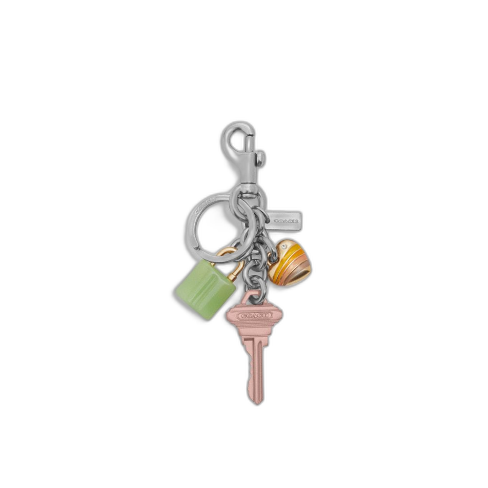 Coach Women's Key Cluster Bag Charm Silver/Pink Multi