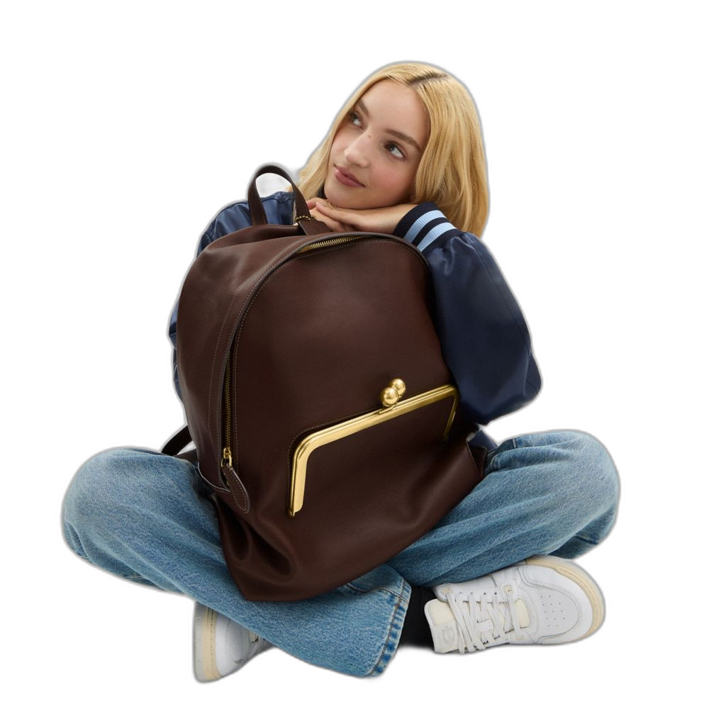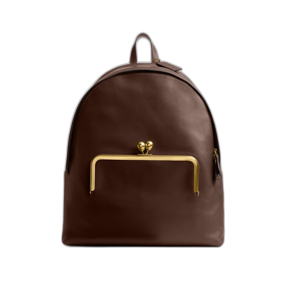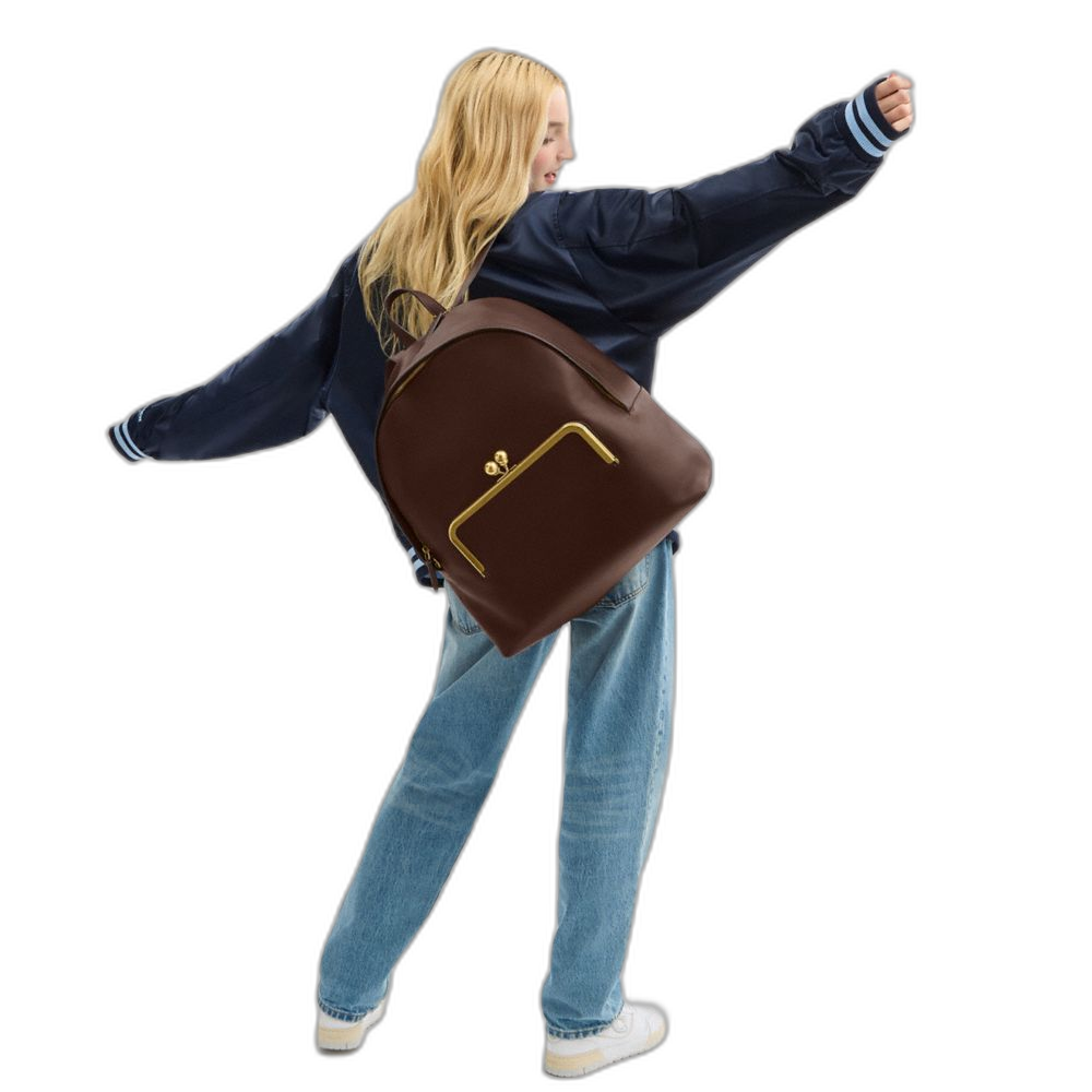 Coach Women's Kisslock Frame Backpack Brass/Dark Brown