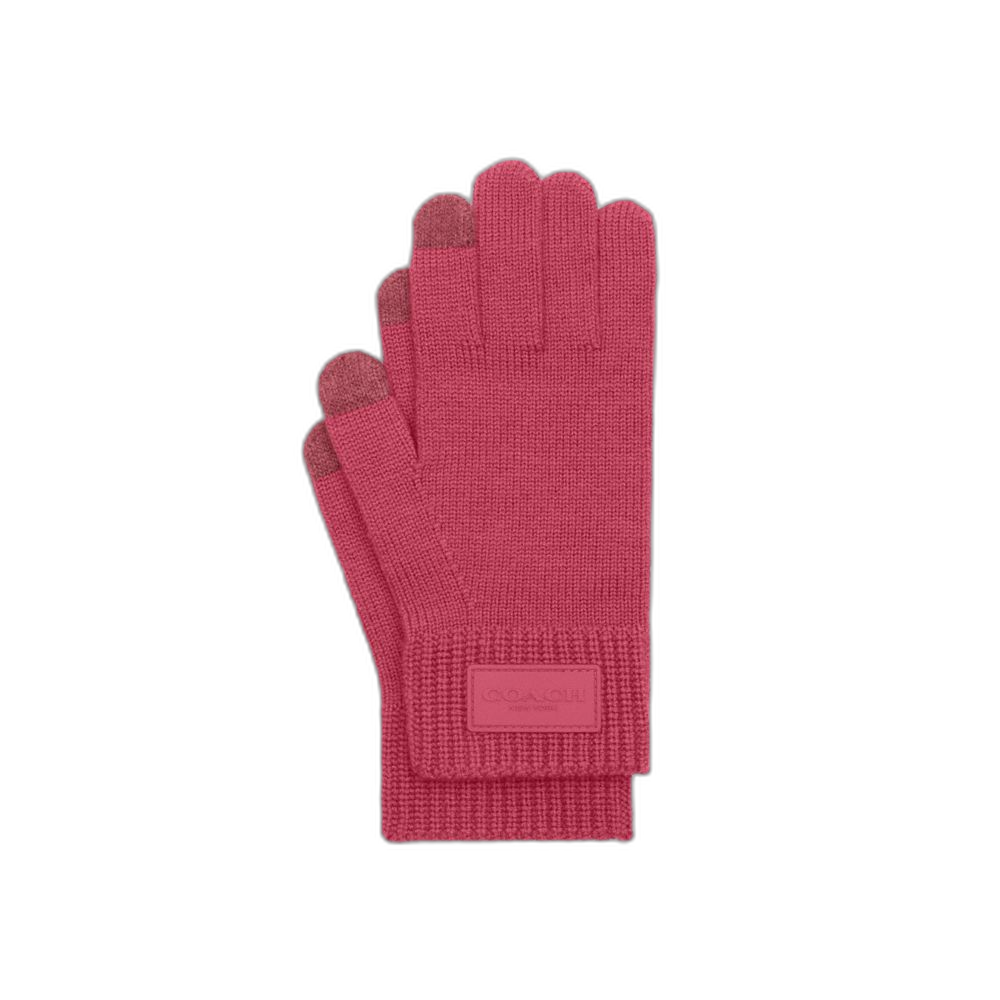Coach Women's Knit Gloves With Rubber Patch Pink