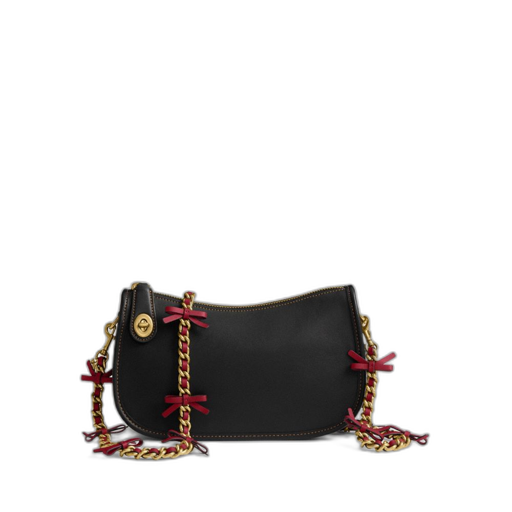 Coach Women's Leather Chain Strap With Bows Brass/Ruby