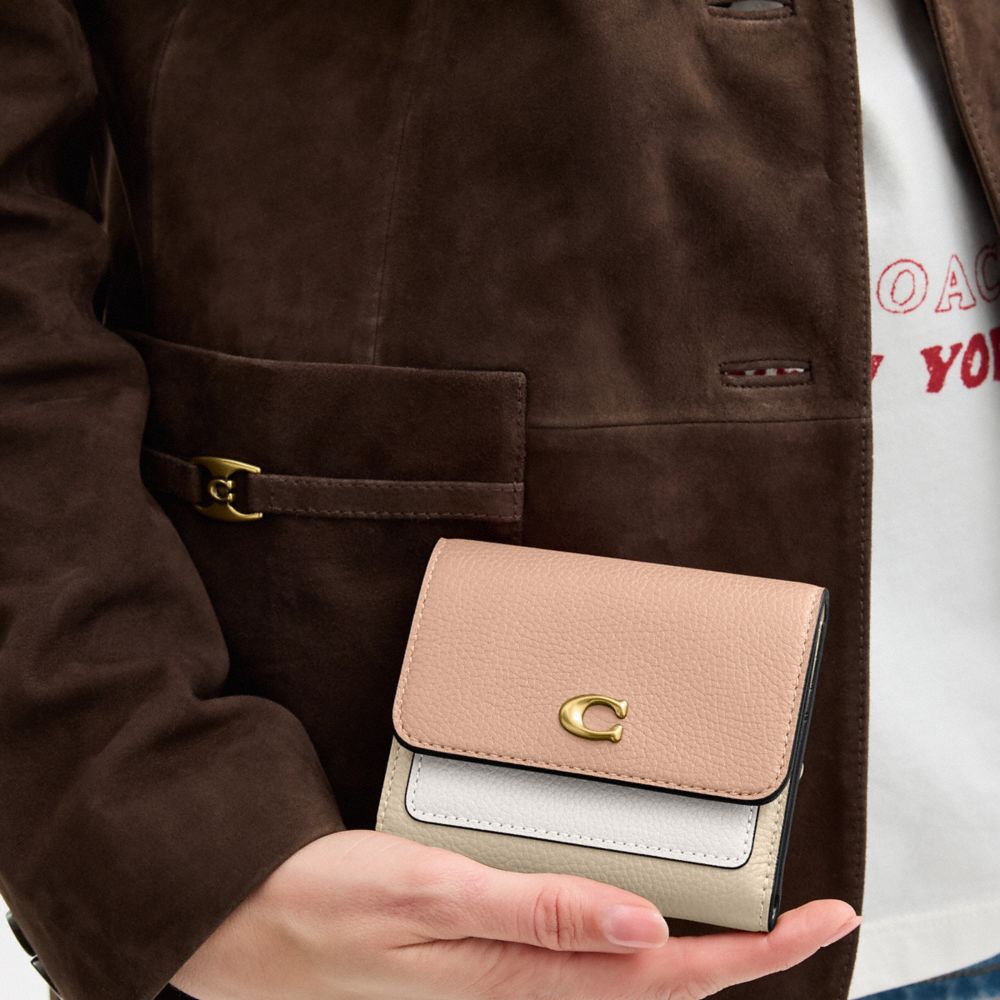Coach Women's Mila Small Flap Wallet In Colorblock Brass/Cream Multi