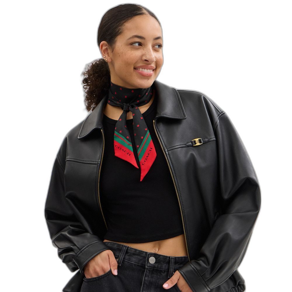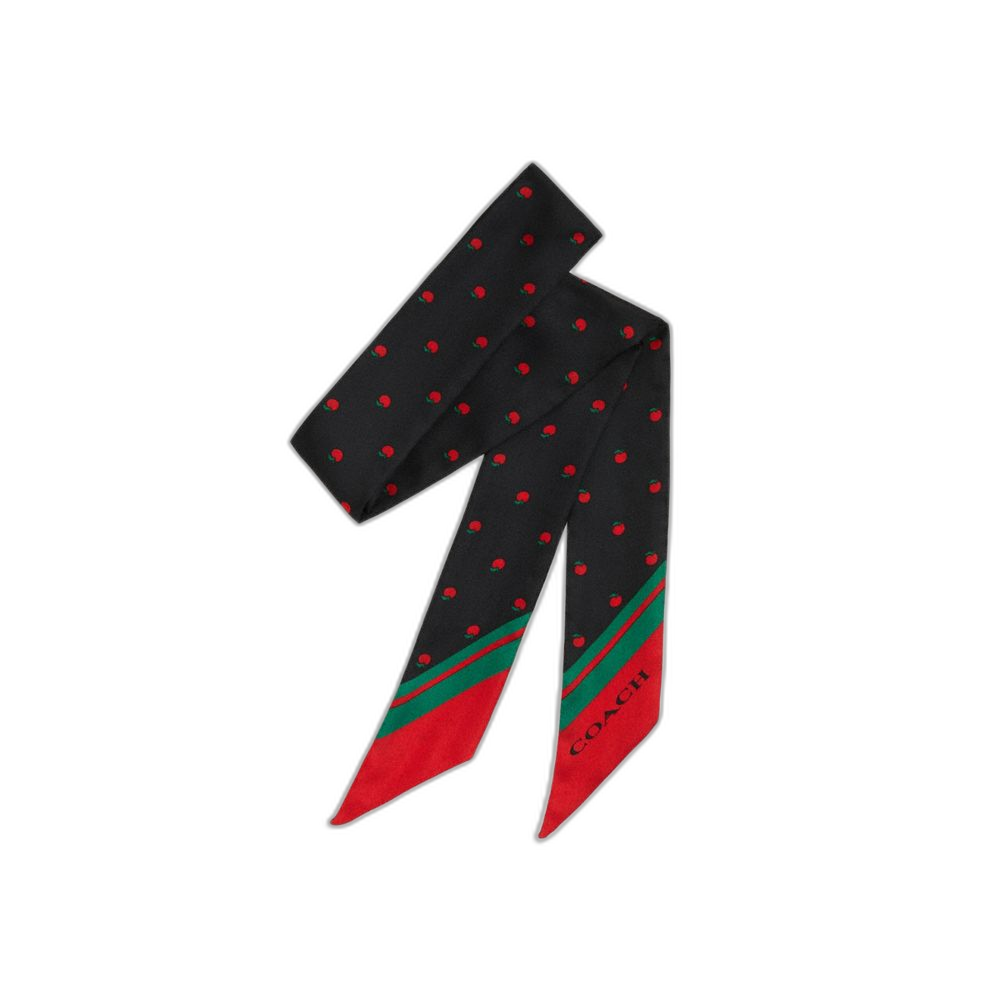 Coach Women's Mini Apple Print Silk Skinny Scarf Black Multicolor