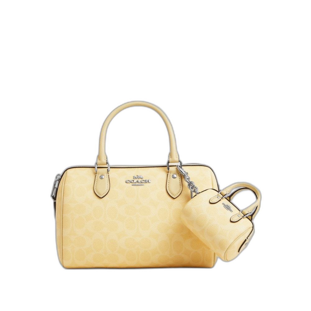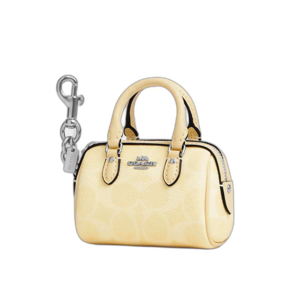 Coach Women's Mini Rowan Bag Charm In Signature Canvas Silver/Hay