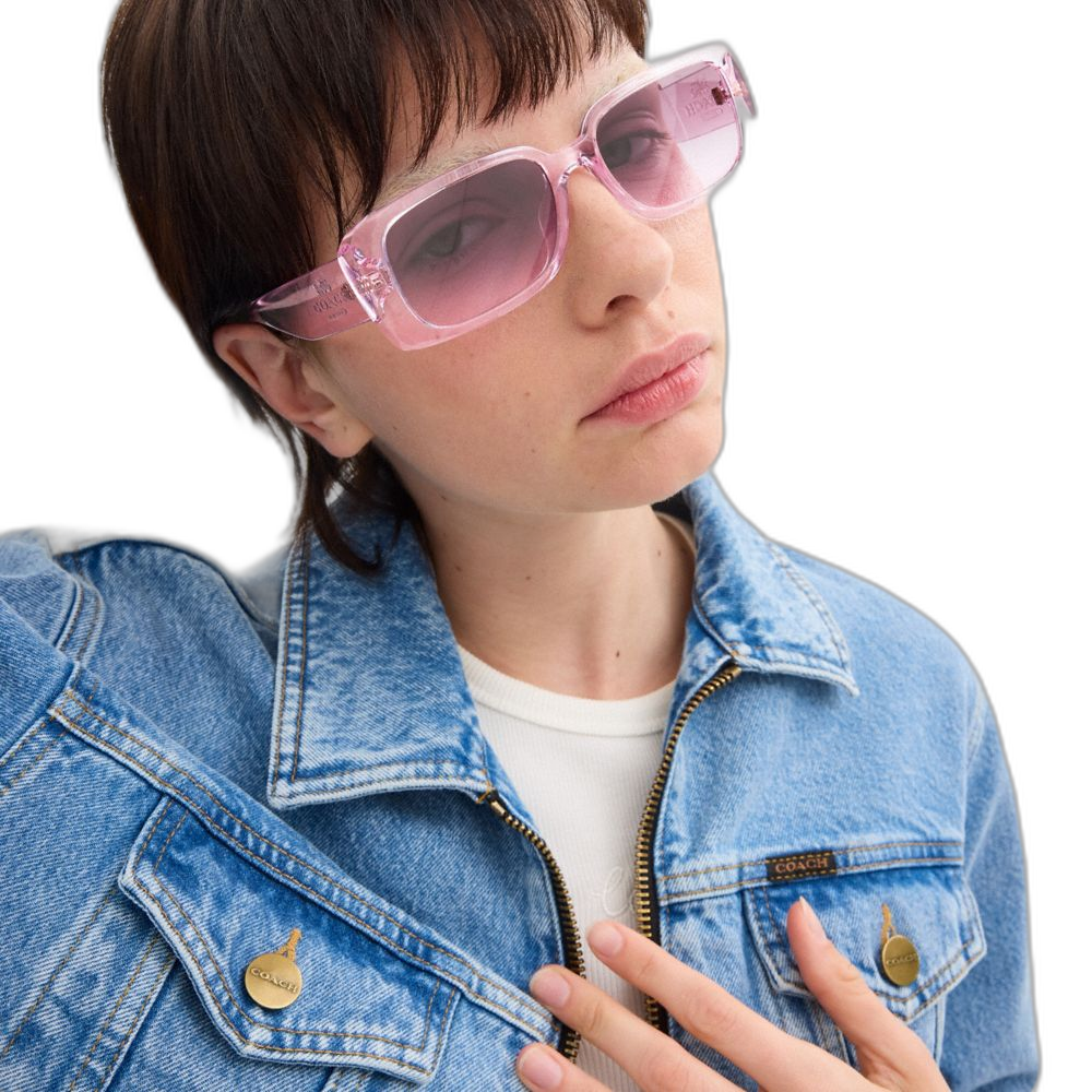 Coach Women's Narrow Rectangle Sunglasses Transparent Pink