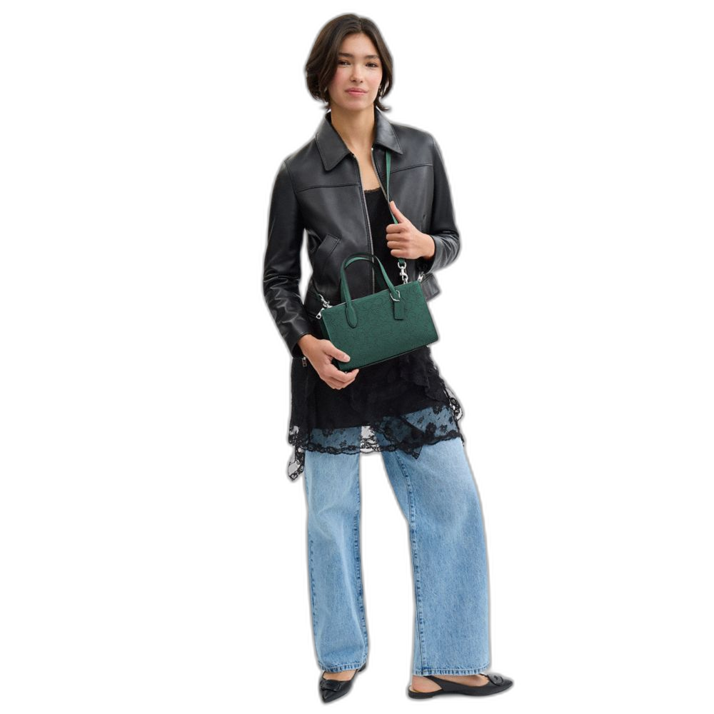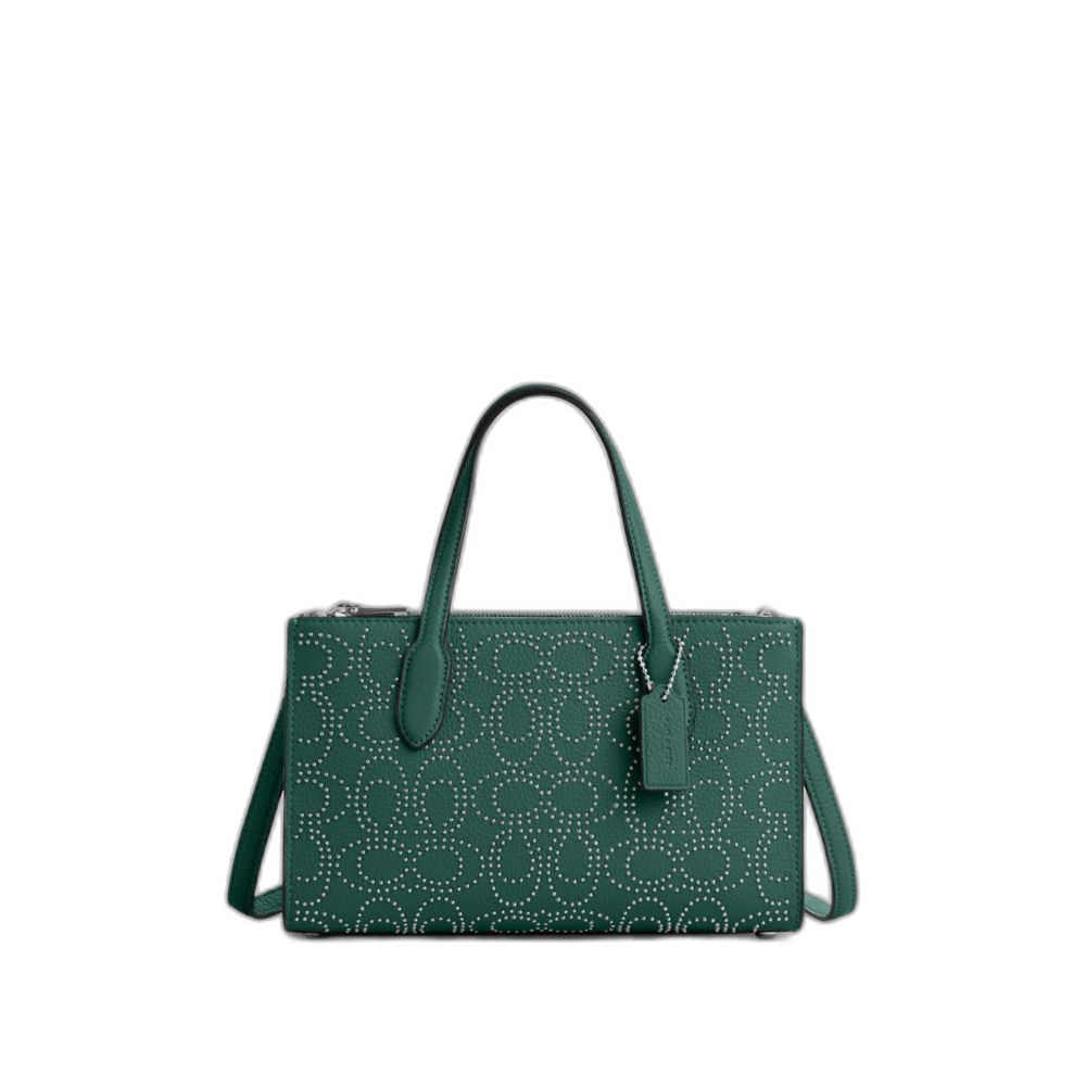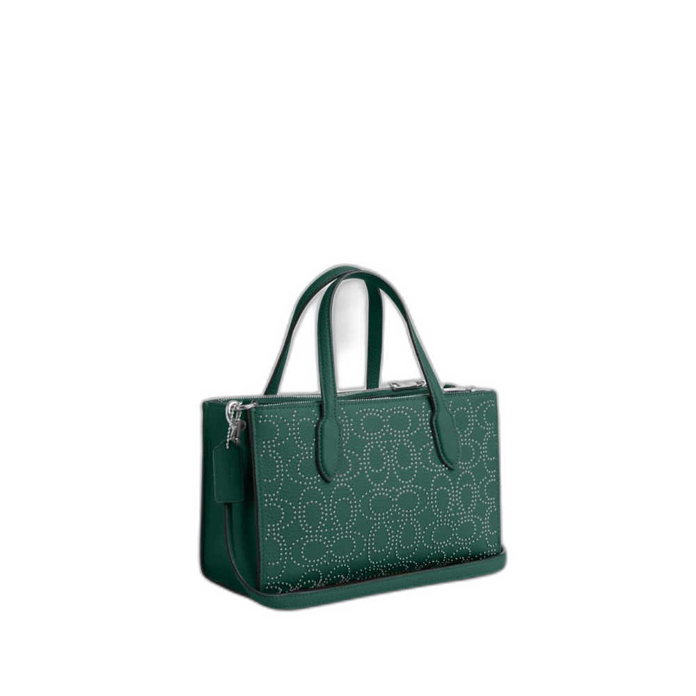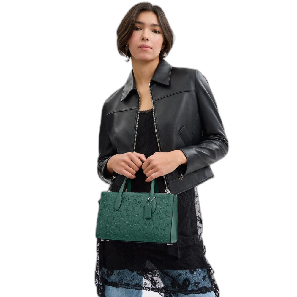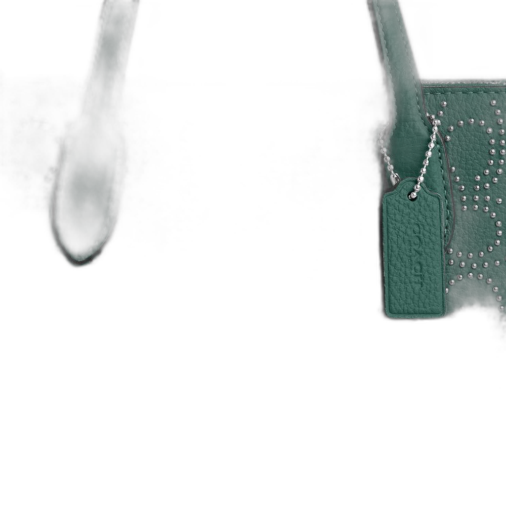 Coach Women's Nina Small Tote Bag With Signature Rivets Silver/Emerald Green