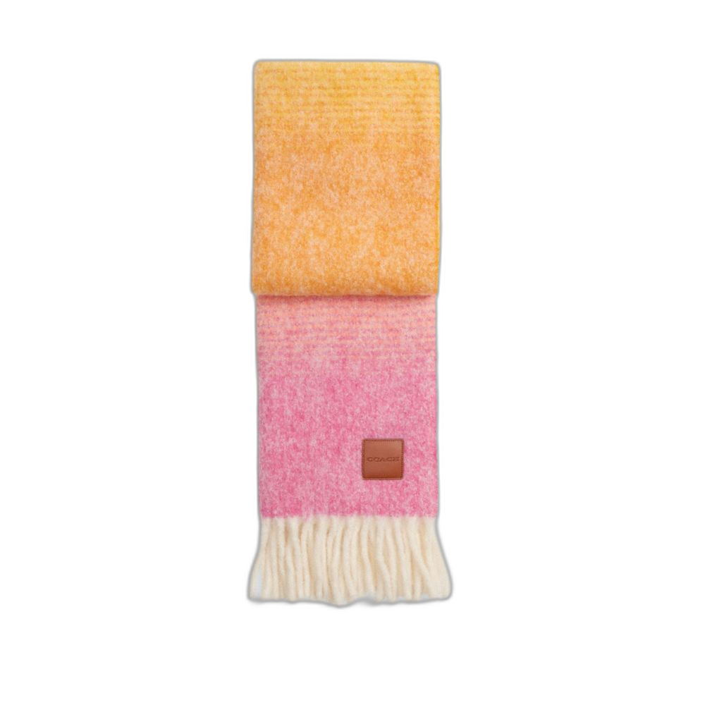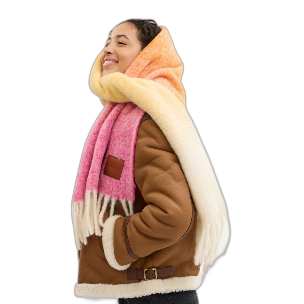Coach Women's Ombre Muffler With Leather Patch Pink/Multi