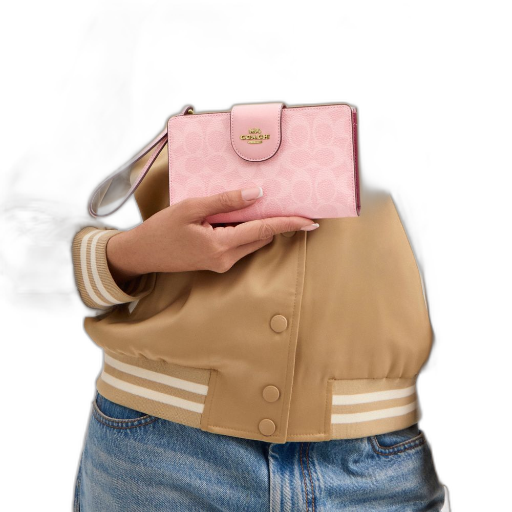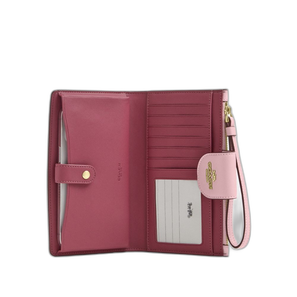 Coach Women's Phone Wallet In Signature Canvas Gold/Powder Pink