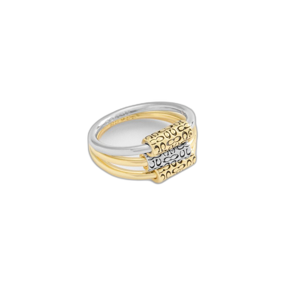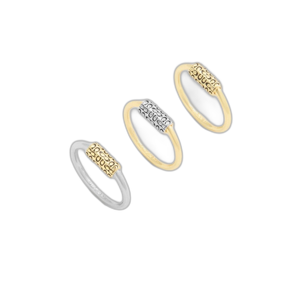 Coach Women's Quilted Signature Bead Ring Set Gold/Silver