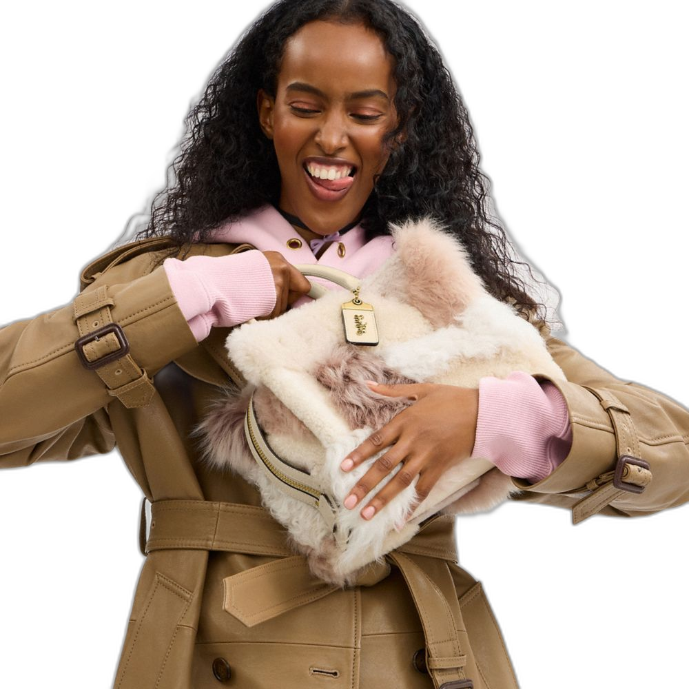 Shearling and glovetanned leather One credit card slot Inside snap and multifunction pockets Zip closure, fabric and leather lining Two... Read more