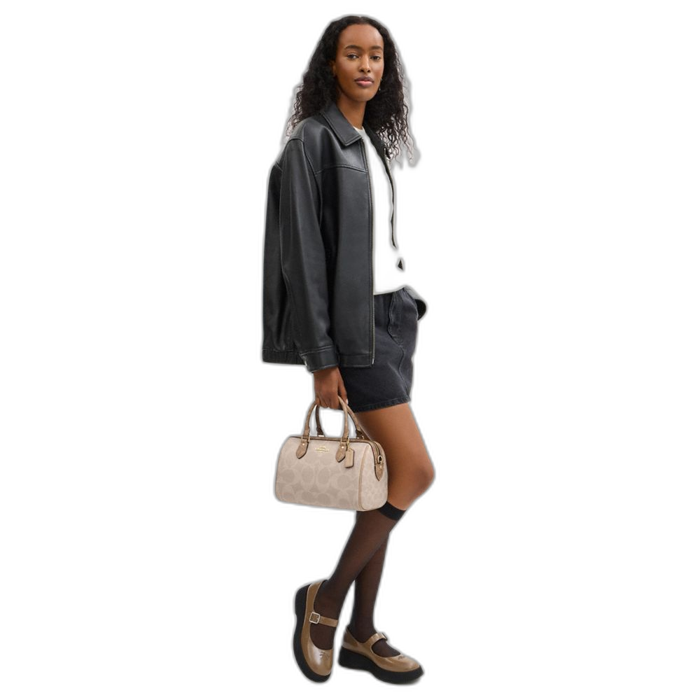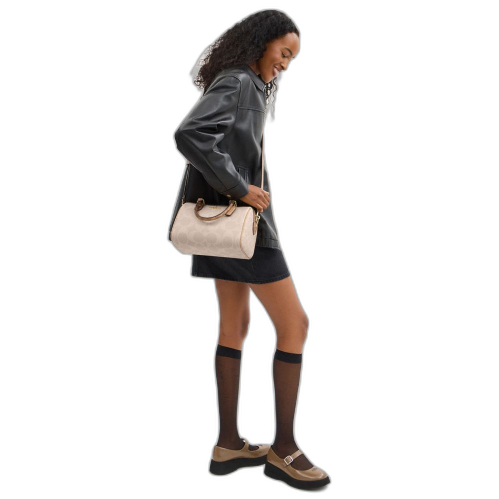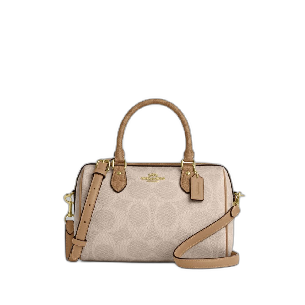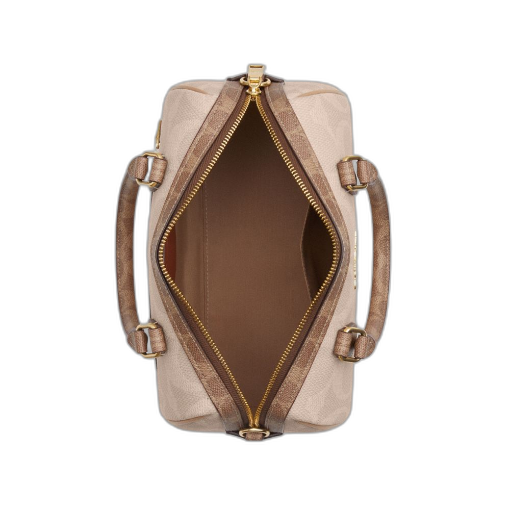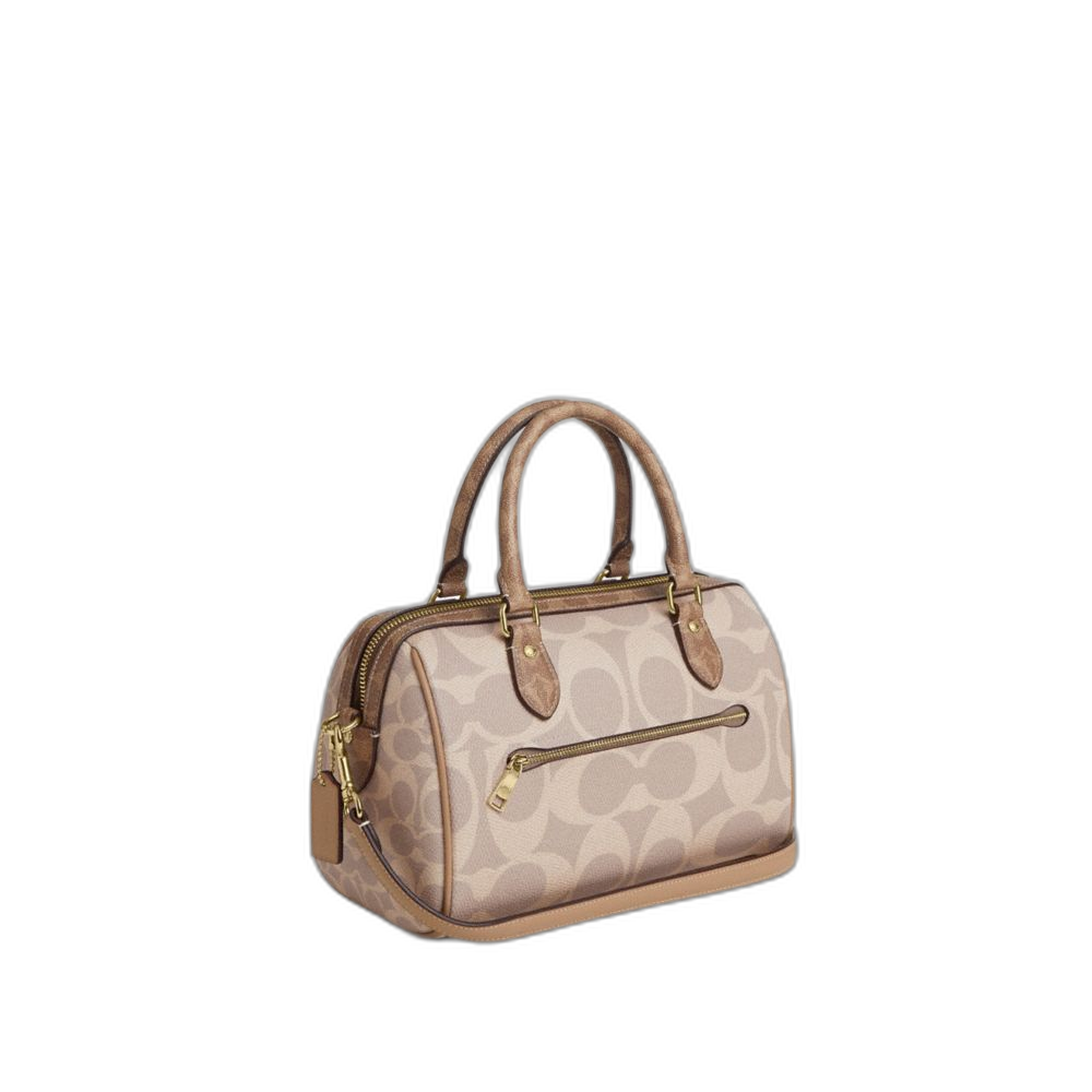 Coach Women's Rowan Satchel Bag In Blocked Signature Canvas Gold/Sand/Tan