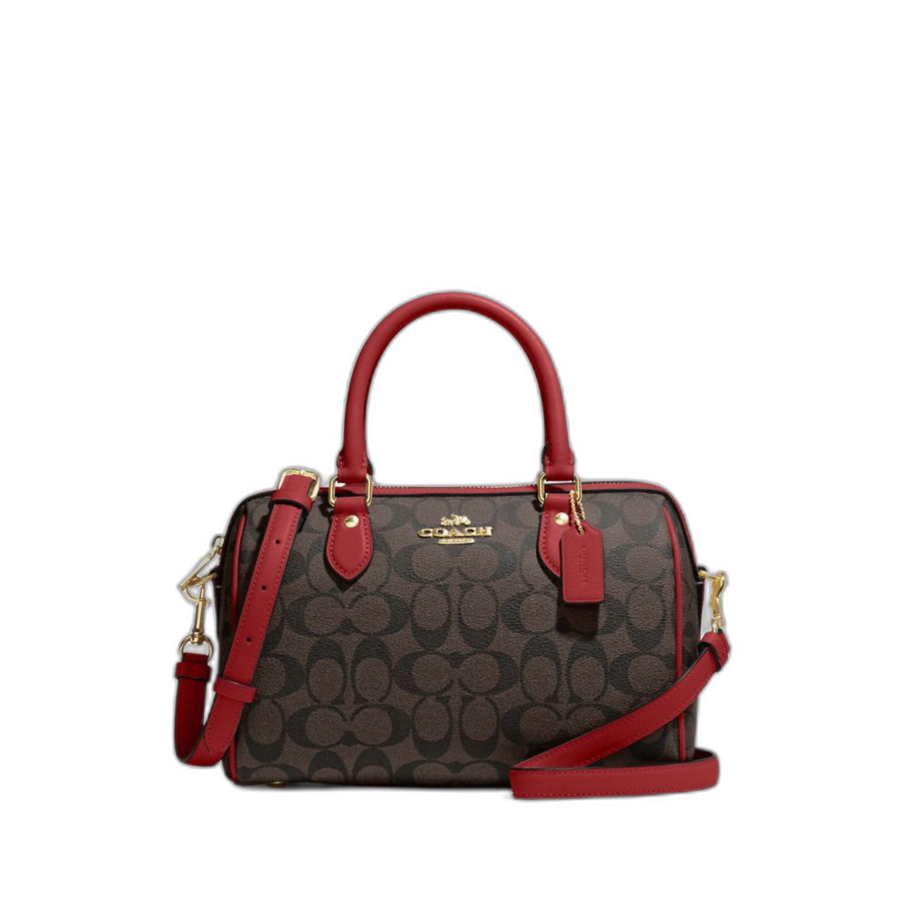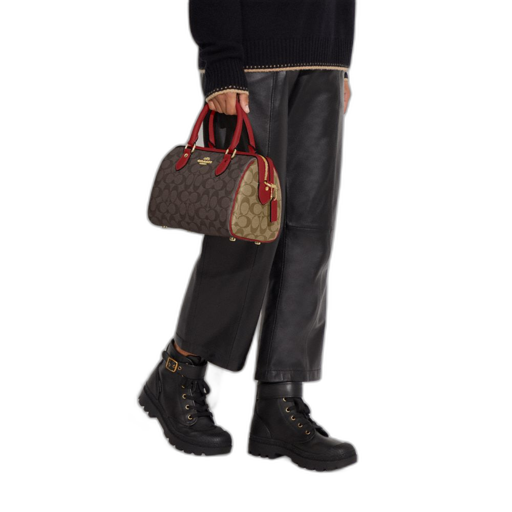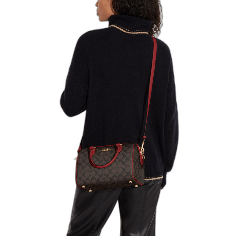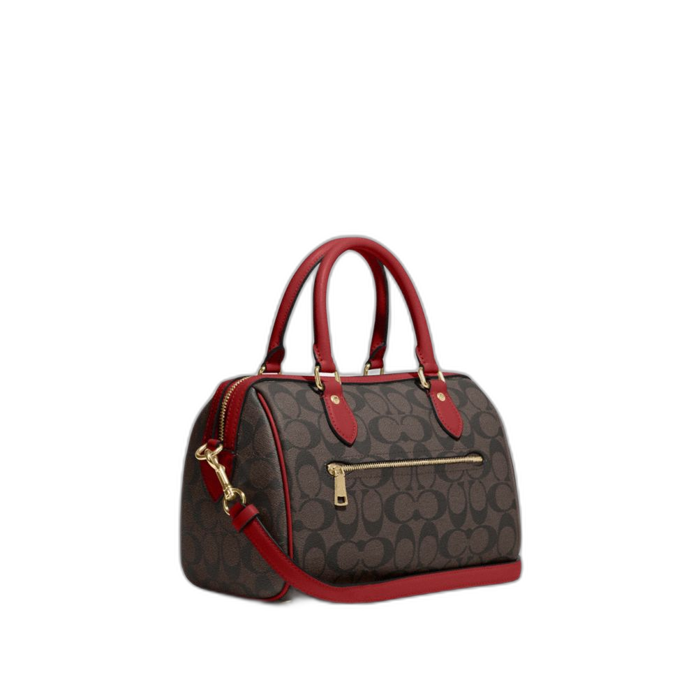 Coach Women's Rowan Satchel Bag In Signature Canvas Gold/Brown 1941 Red
