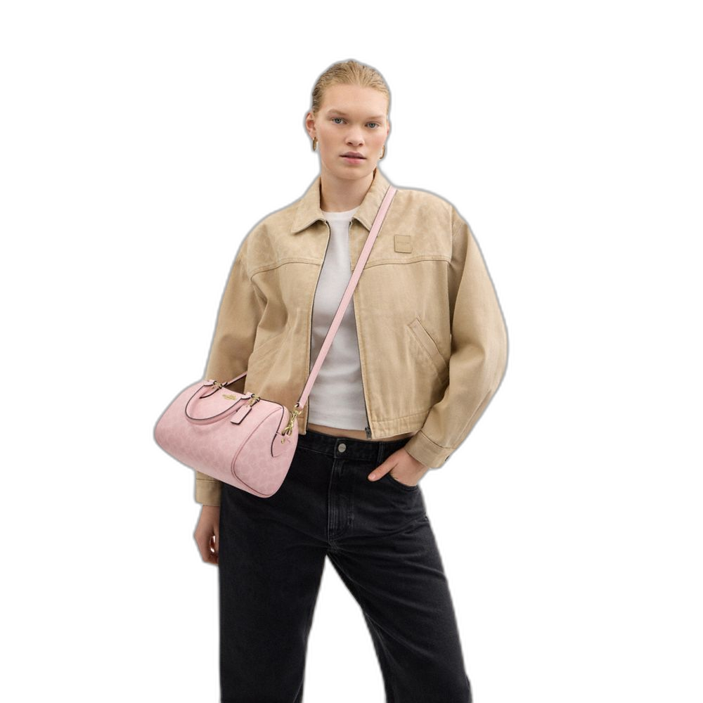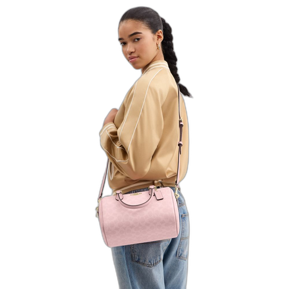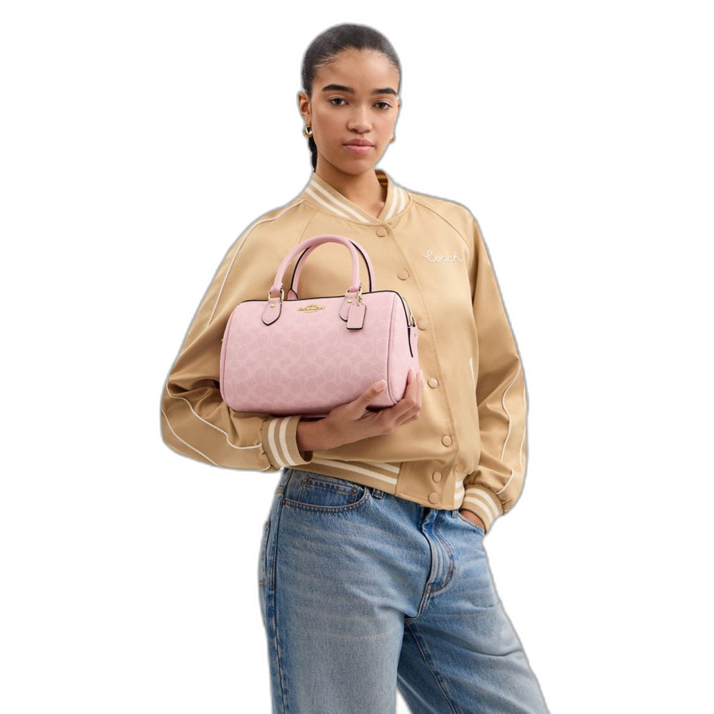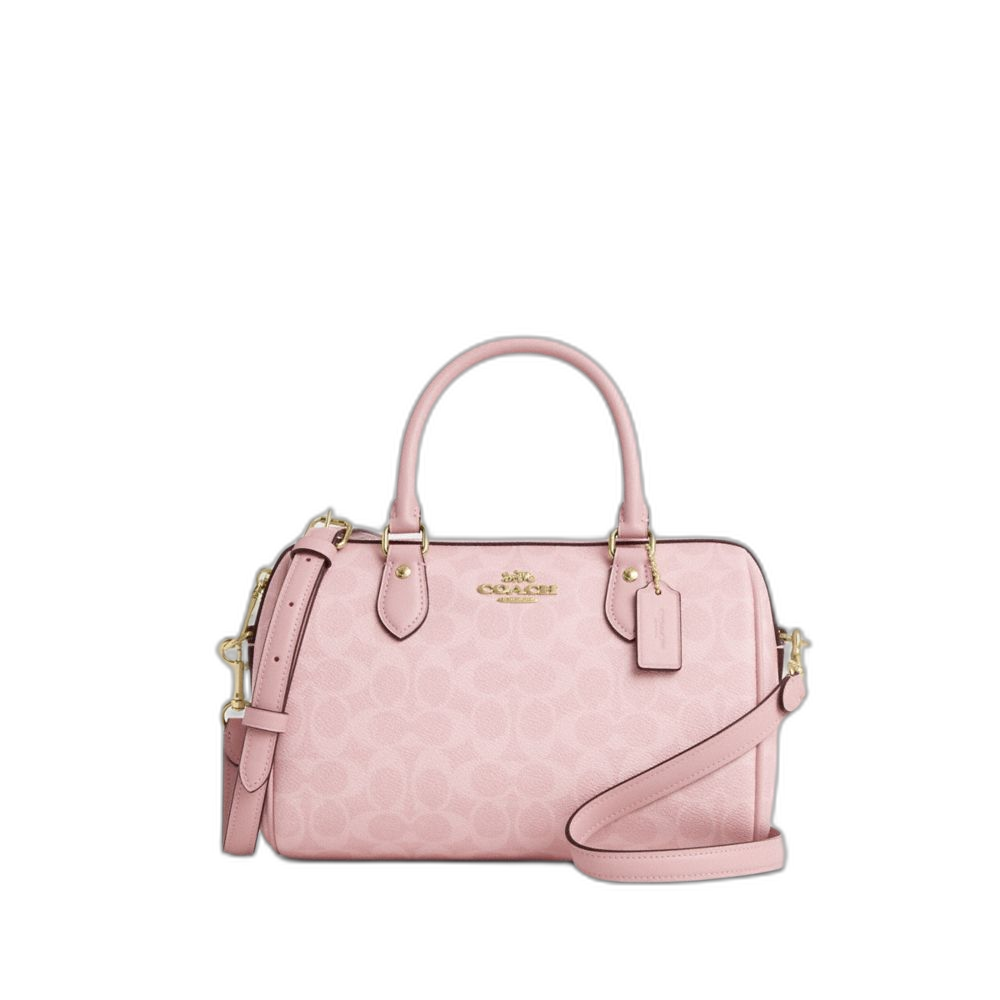 Coach Women's Rowan Satchel Bag In Signature Canvas Gold/Powder Pink