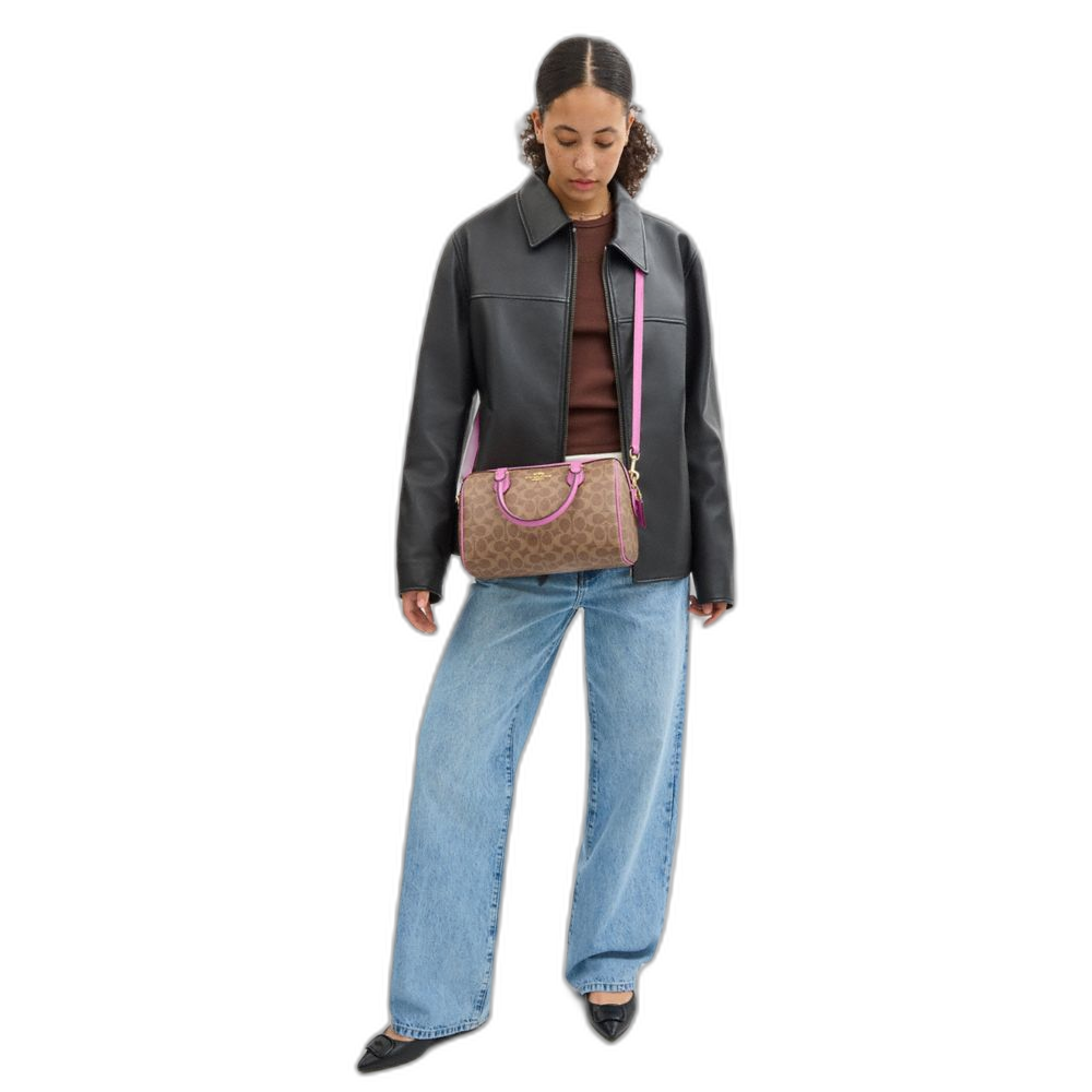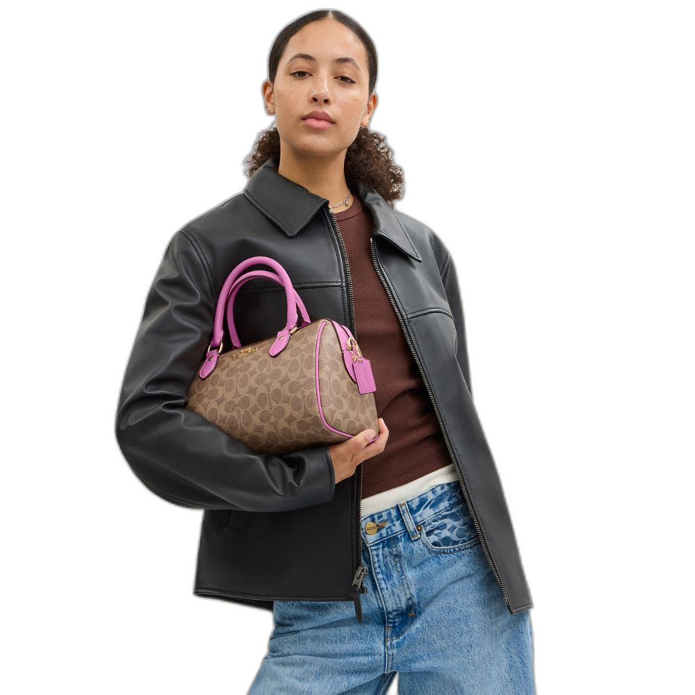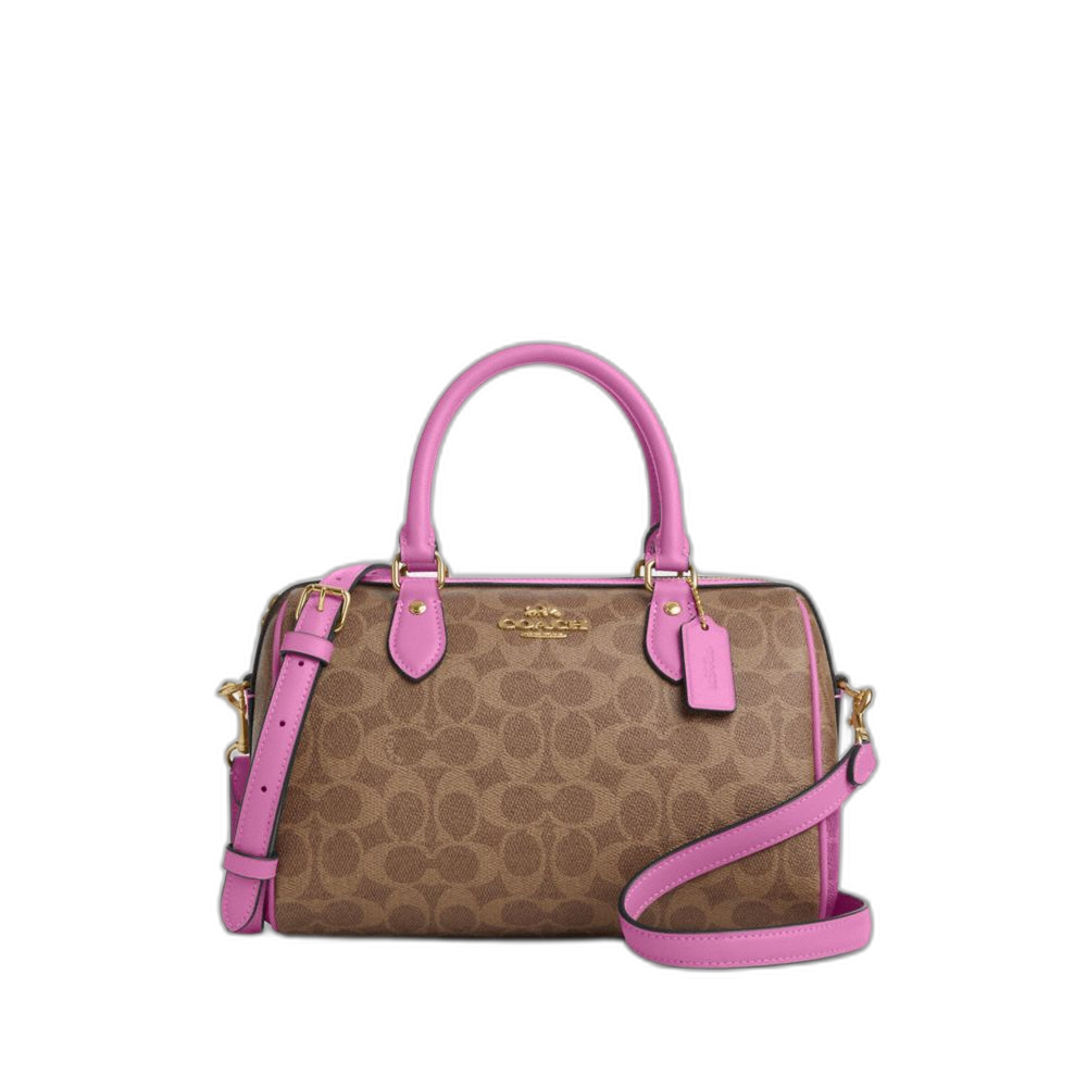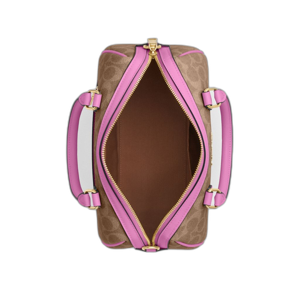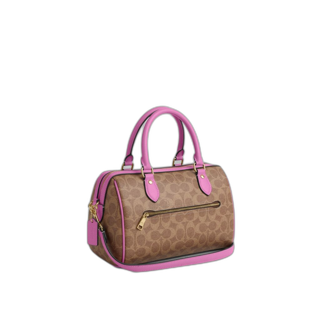 Coach Women's Rowan Satchel Bag In Signature Canvas Im/Tan/Fuschia