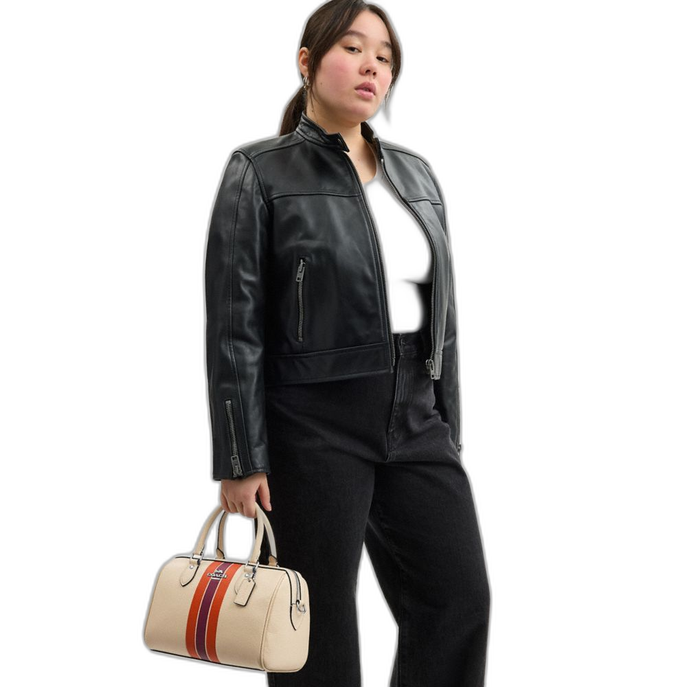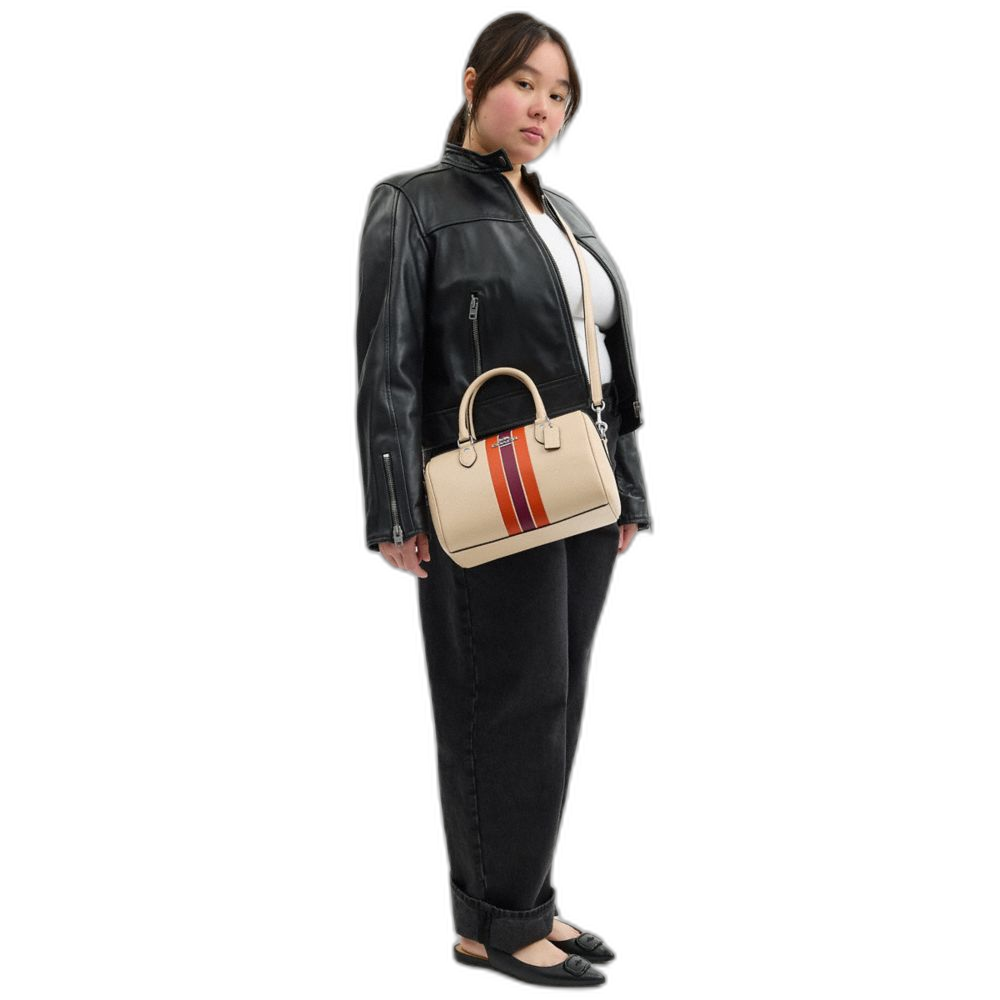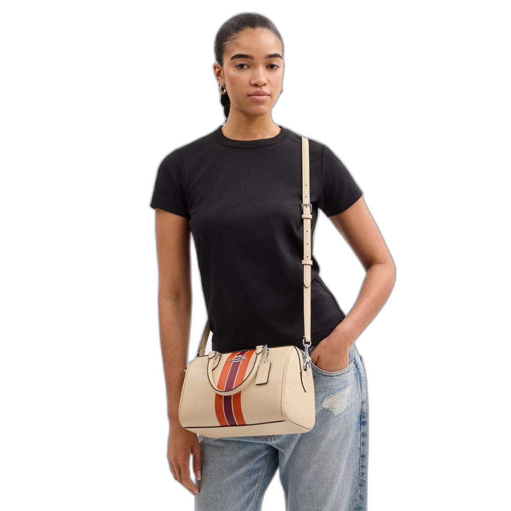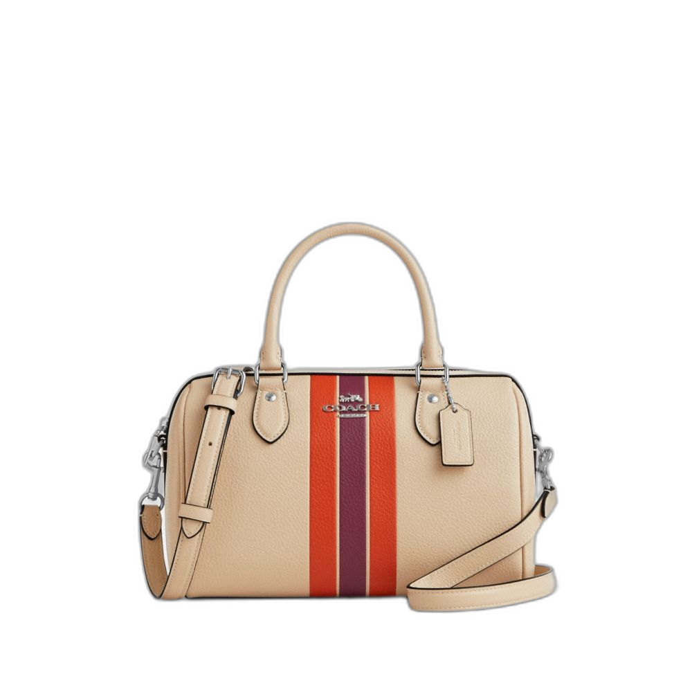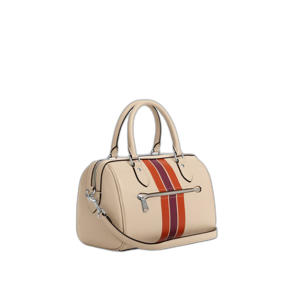 Coach Women's Rowan Satchel Bag With Stripe Silver/Ivory Multi