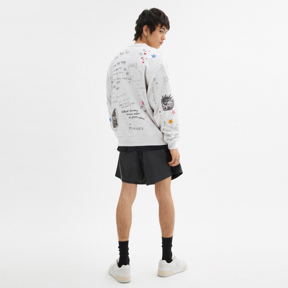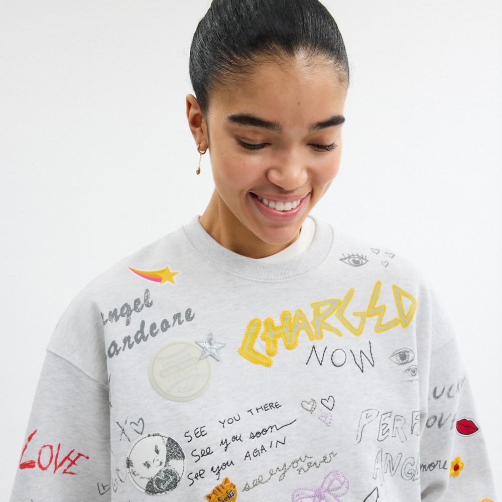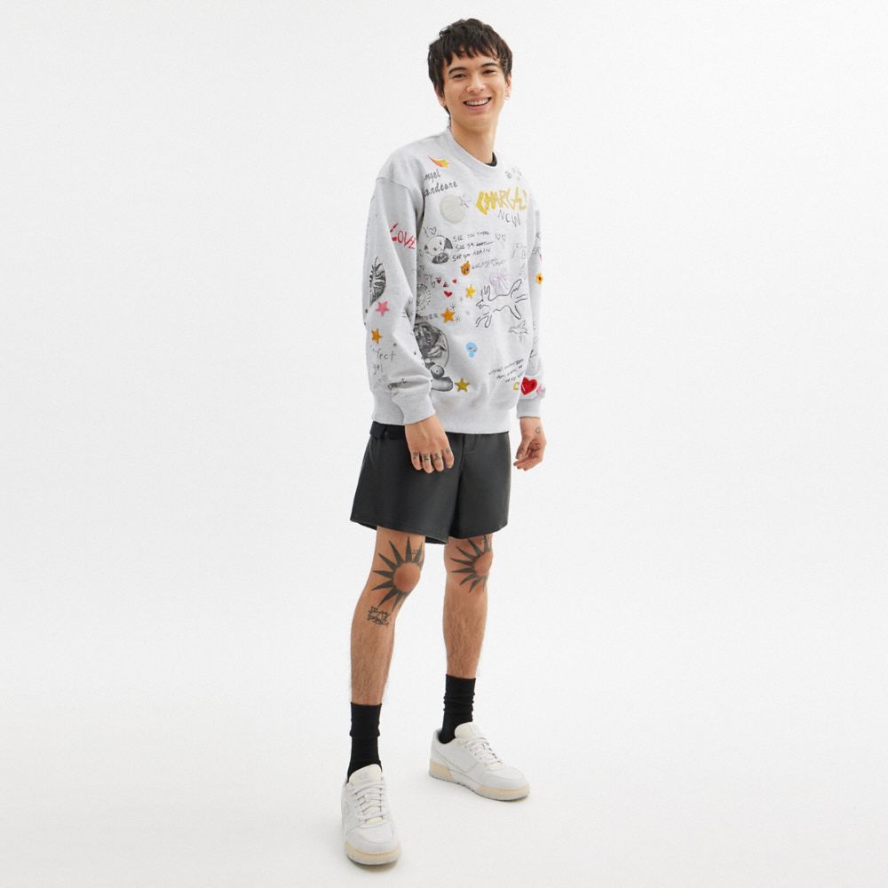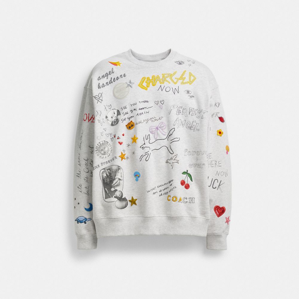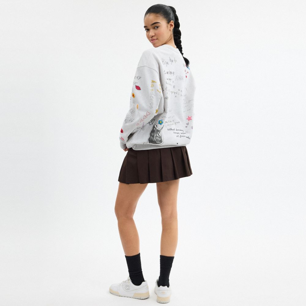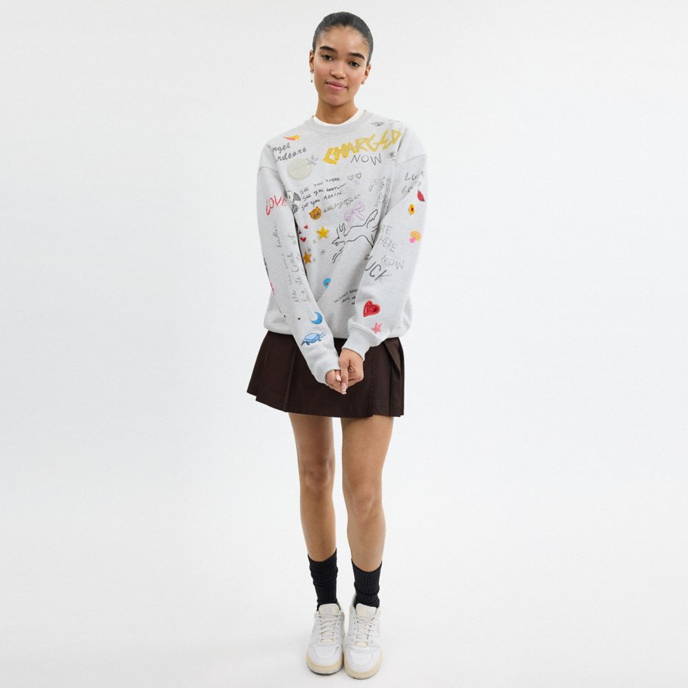Coach Women's Sketch Print Crewneck Sweatshirt Grey Multi