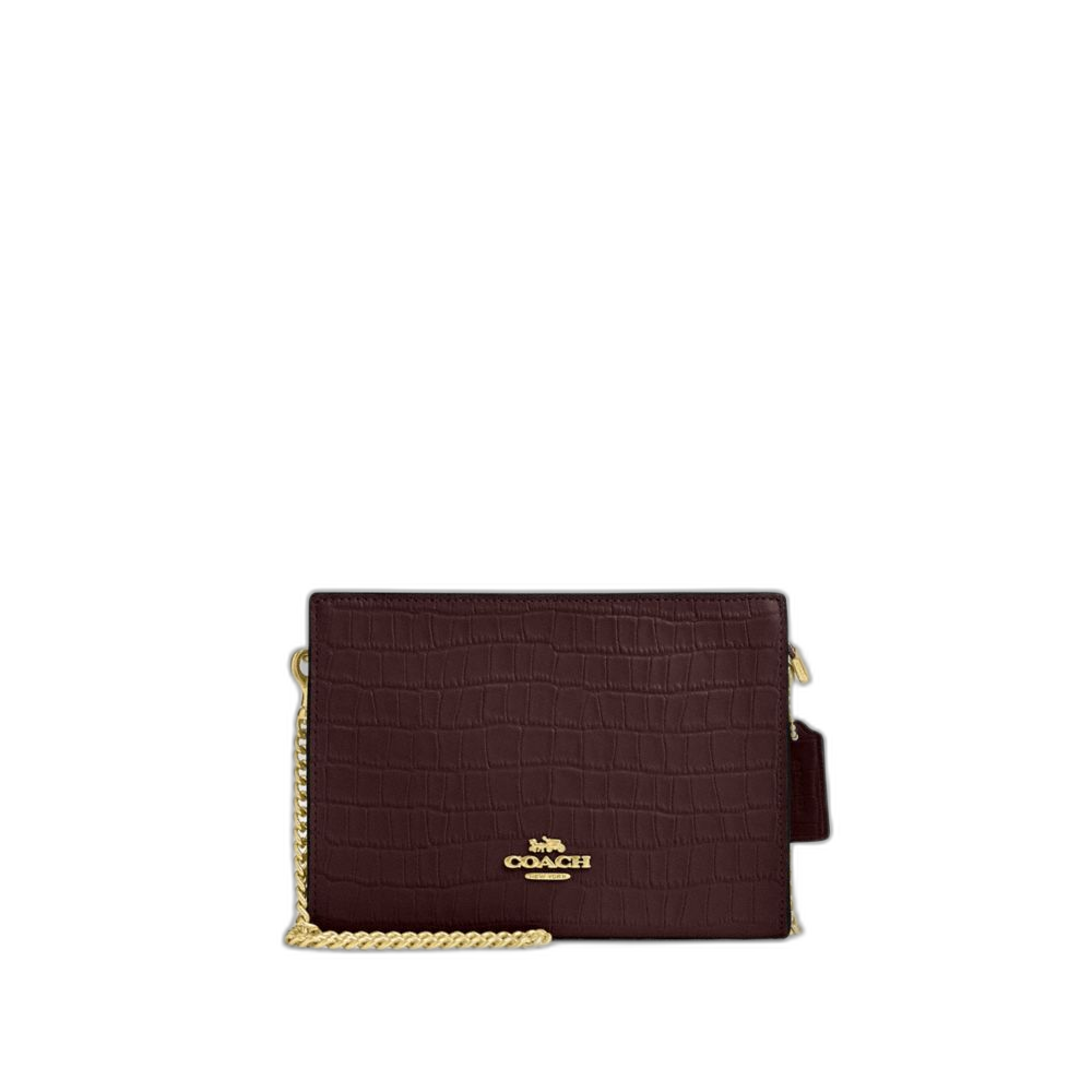 Crocodile-embossed leather and smooth leather Two credit card slots Zip-top closure, fabric lining Chain strap with 22 1/2" drop for... Read more