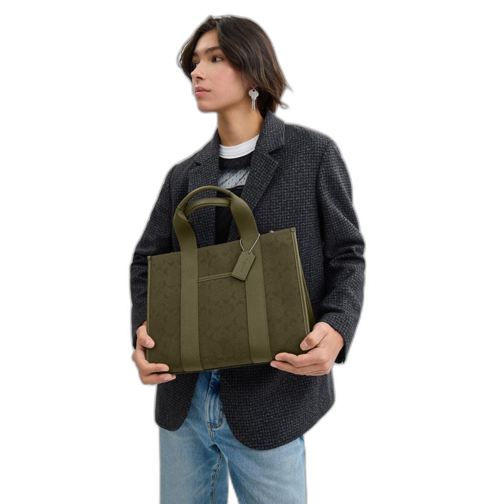 Coach Women's Smith Tote Bag In Signature Jacquard Silver/Olive Drab/Olive Drab