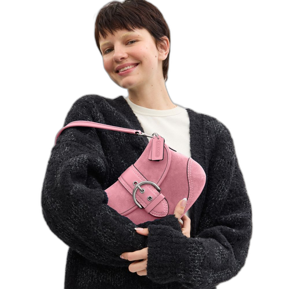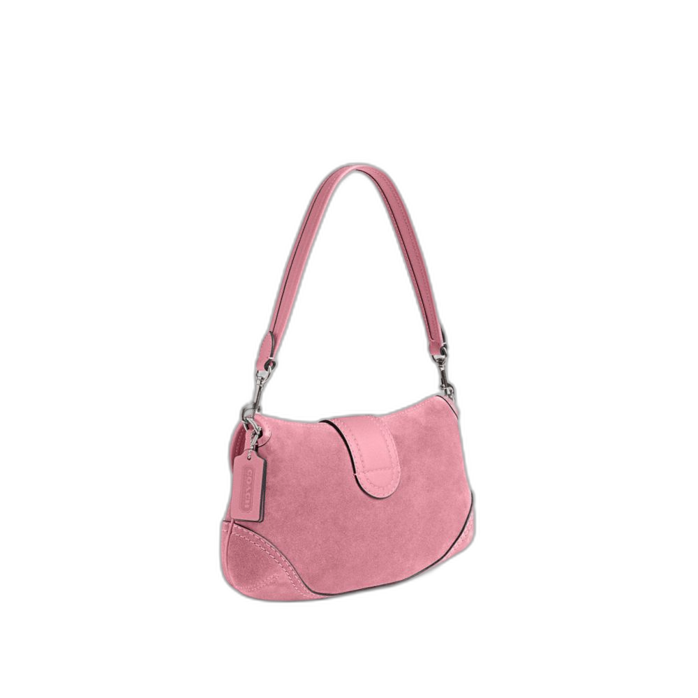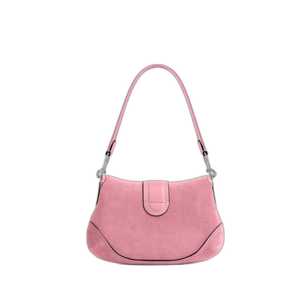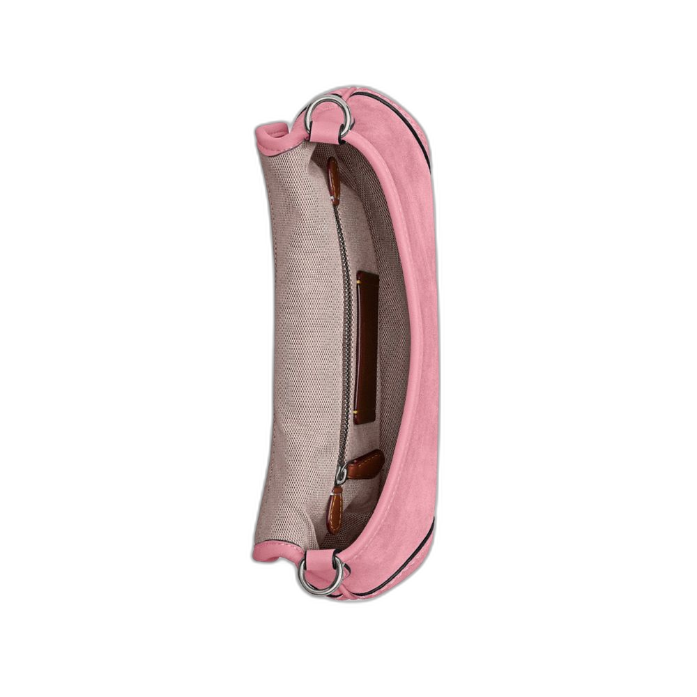 Suede and glovetanned leather Inside zip pocket Magnetic snap closure, fabric lining Detachable handle with 8 3/4" drop 10 1/2"... Read more
