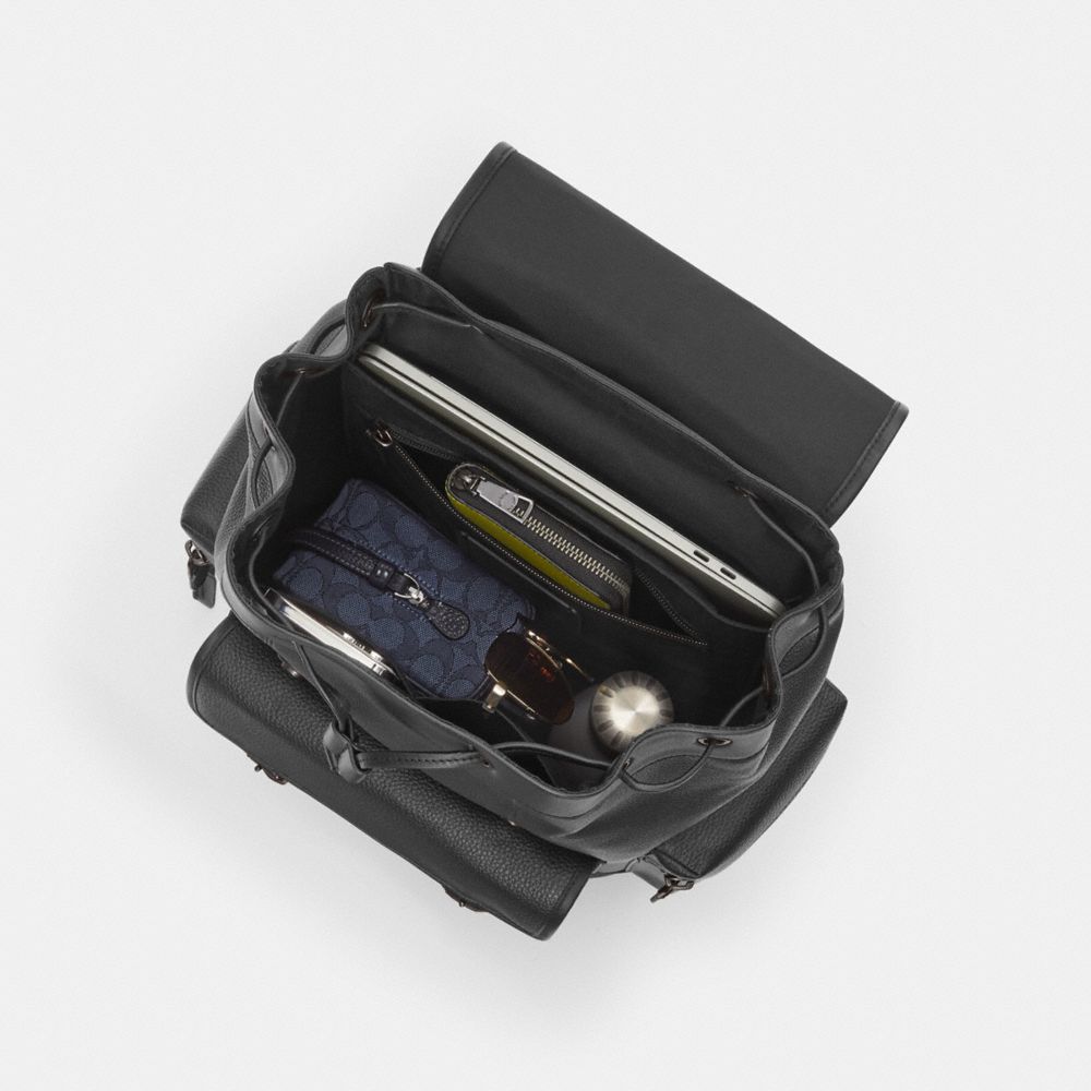 Signature jacquard, refined pebble leather and smooth calf leather Inside zip, cell phone and multifunction pockets Inside tech sleeve Drawstring... Read more