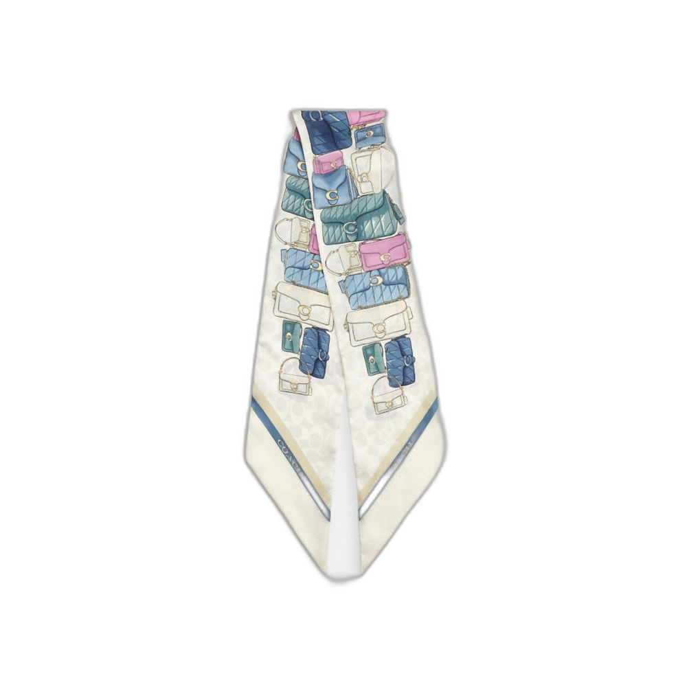 Coach Women's Stacked Tabby Bags Print Silk Skinny Scarf Chalk Multi