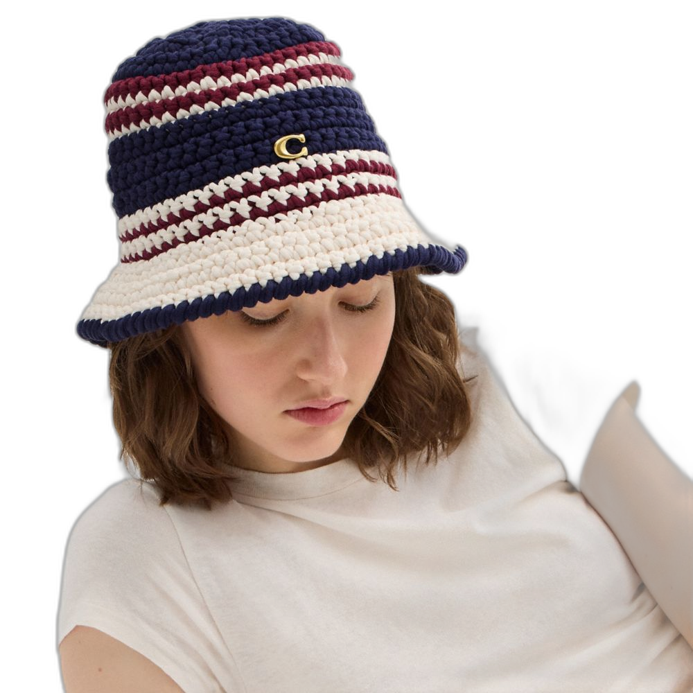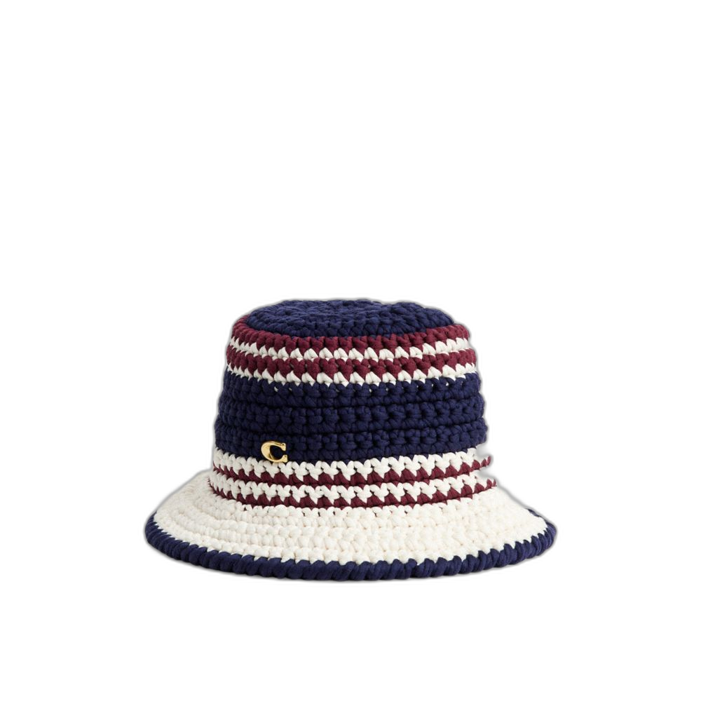 Coach Women's Stripe Crochet Bucket Hat Navy Multi