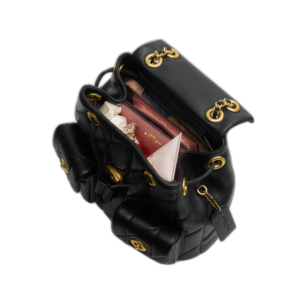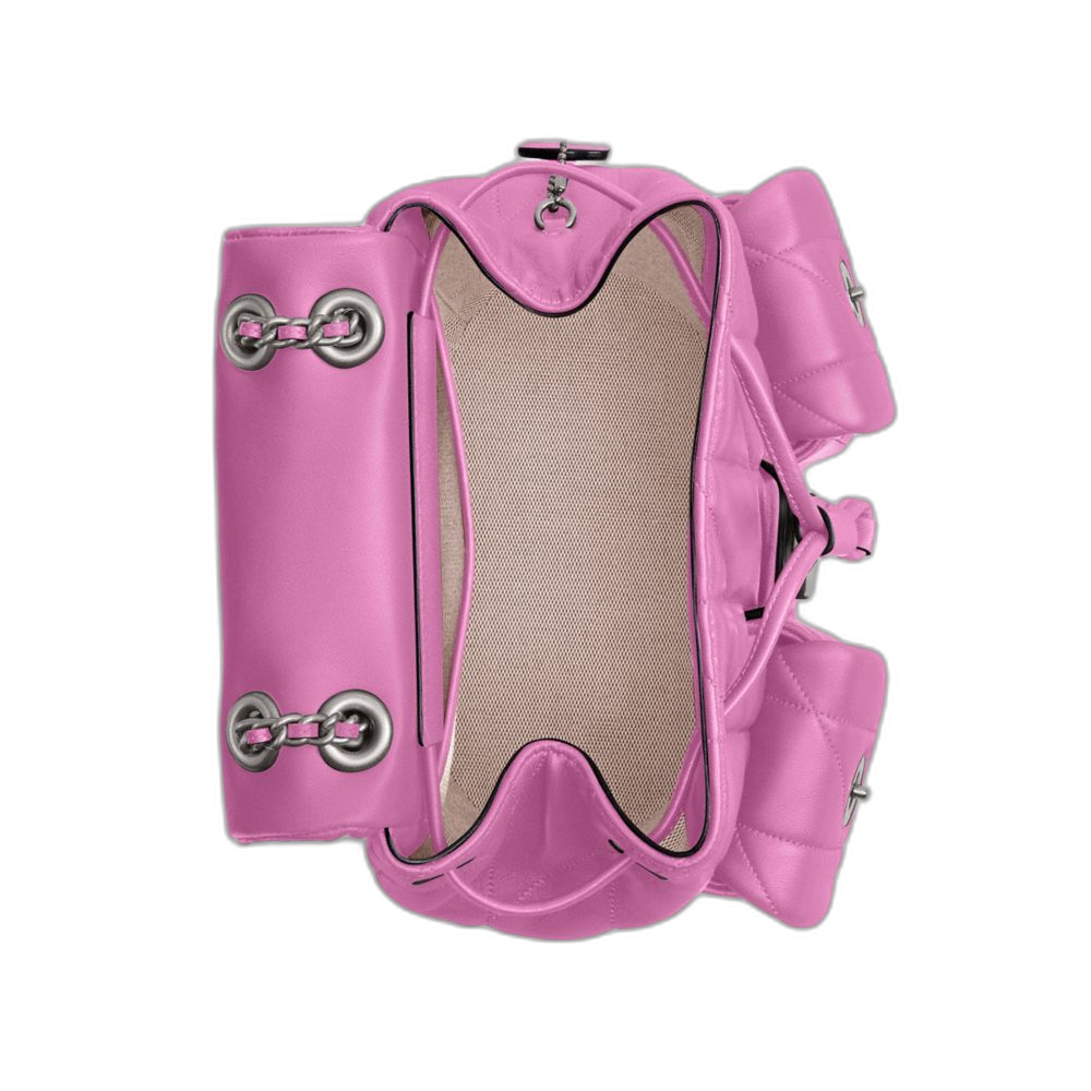 Nappa leather Inside multifunction pocket Drawstring and snap closures, fabric lining Outside turnlock pockets Adjustable shoulder straps with attached chain... Read more