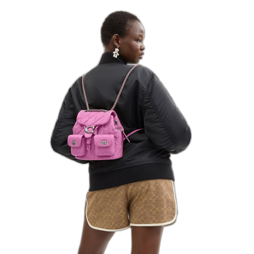 Coach Women's Tabby Backpack With Pillow Quilting Silver/Fuschia