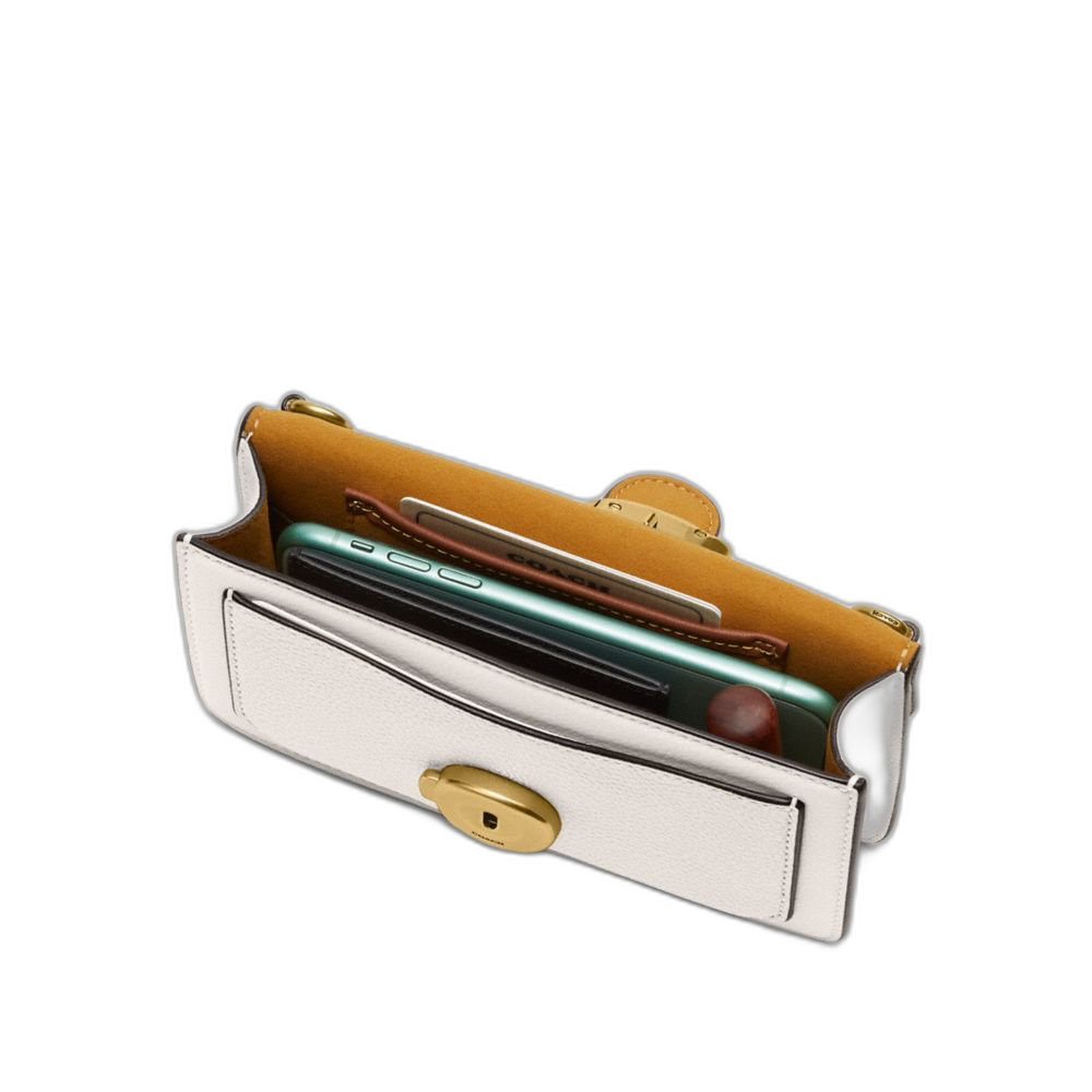 Polished pebble leather Two credit card slots Inside multifunction pocket Pushlock closure, fabric lining Outside open pocket Detachable wrist strap... Read more