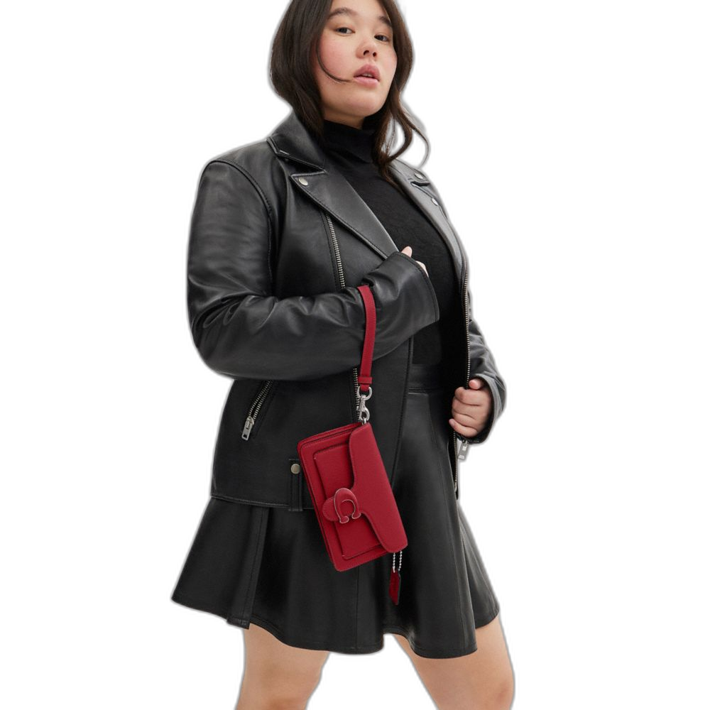 Coach Women's Tabby Crossbody Wristlet Silver/Ruby