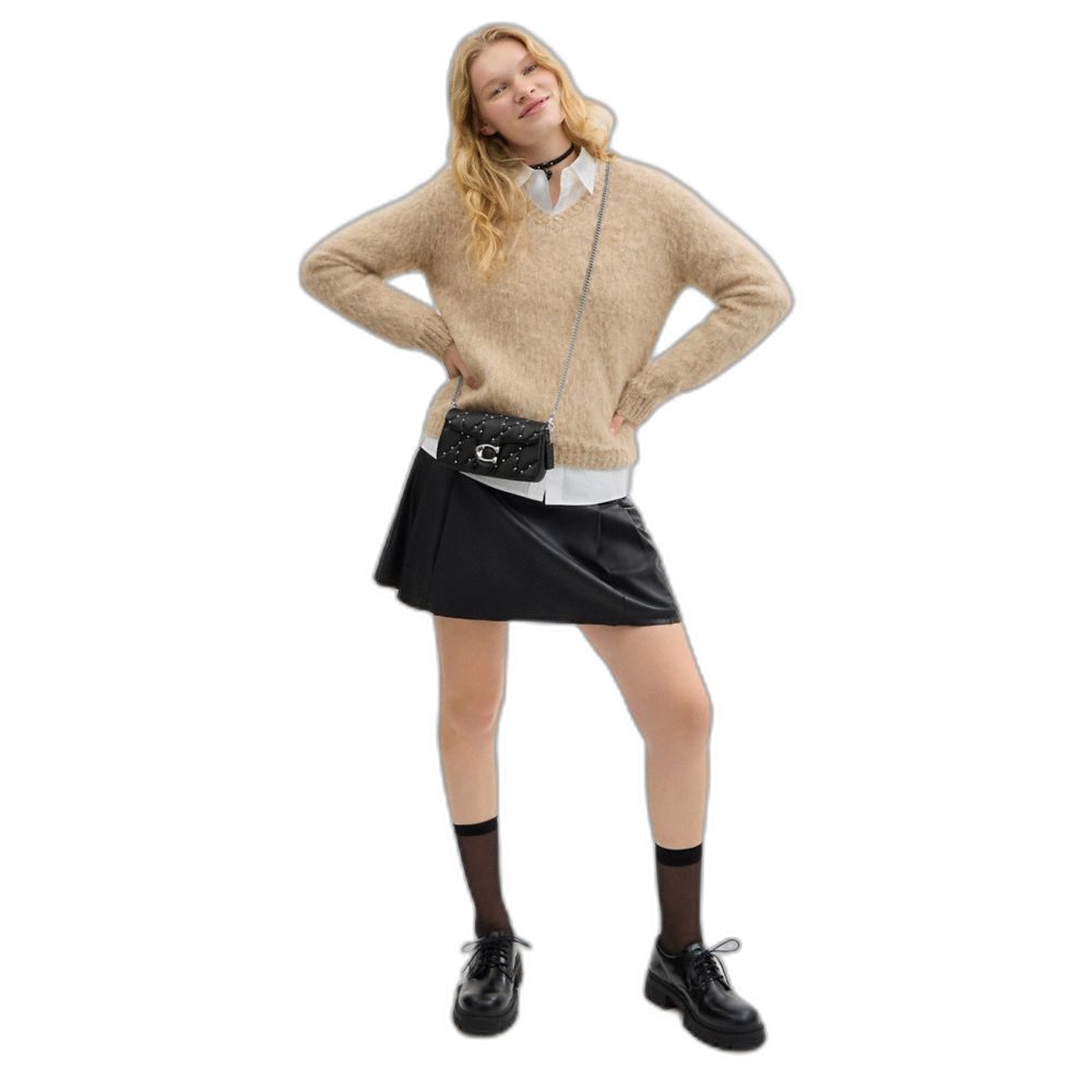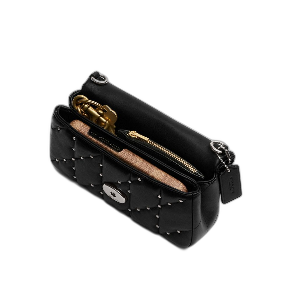 Coach Women's Tabby Crossbody Wristlet With Pillow Quilting And Crystal Rivets Silver/Black