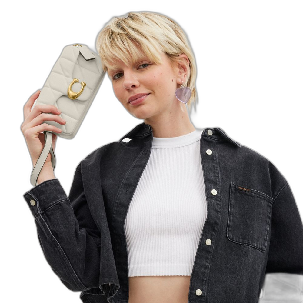 Coach Women's Tabby Crossbody Wristlet With Pillow Quilting Brass/Chalk