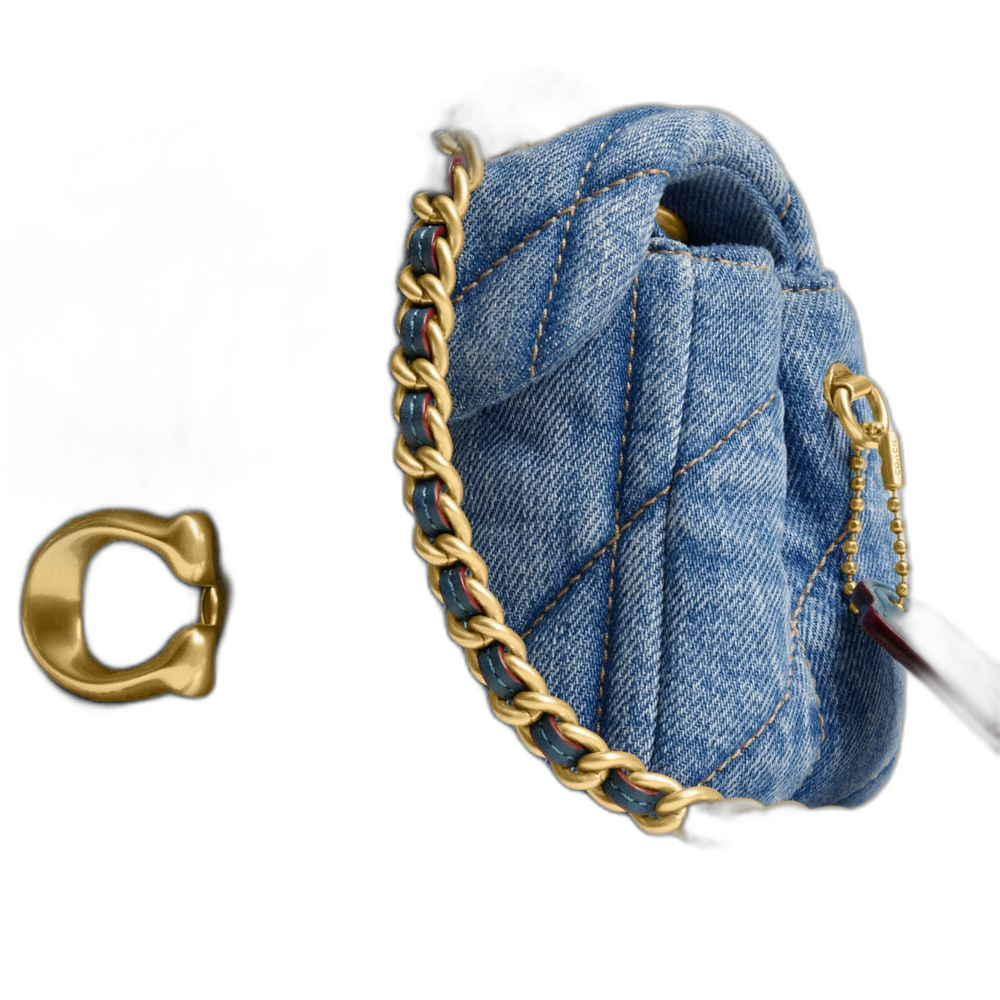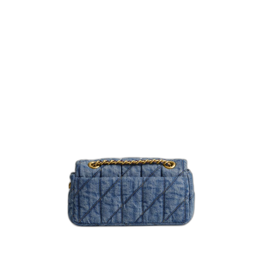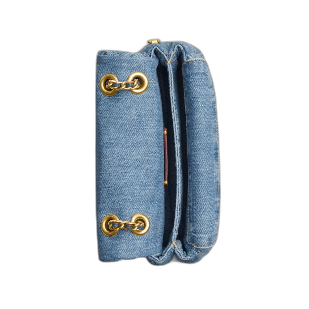 Denim and nappa leather Inside magnetic snap pocket Pushlock closure, fabric lining Outside slip pocket Chain strap with 21 1/2"... Read more