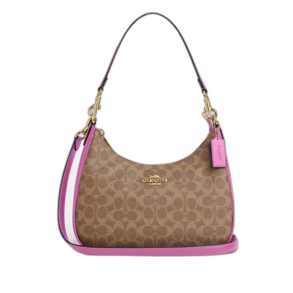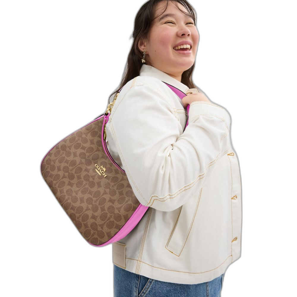Coach Women's Teri Hobo Bag In Signature Canvas Im/Tan/Fuschia