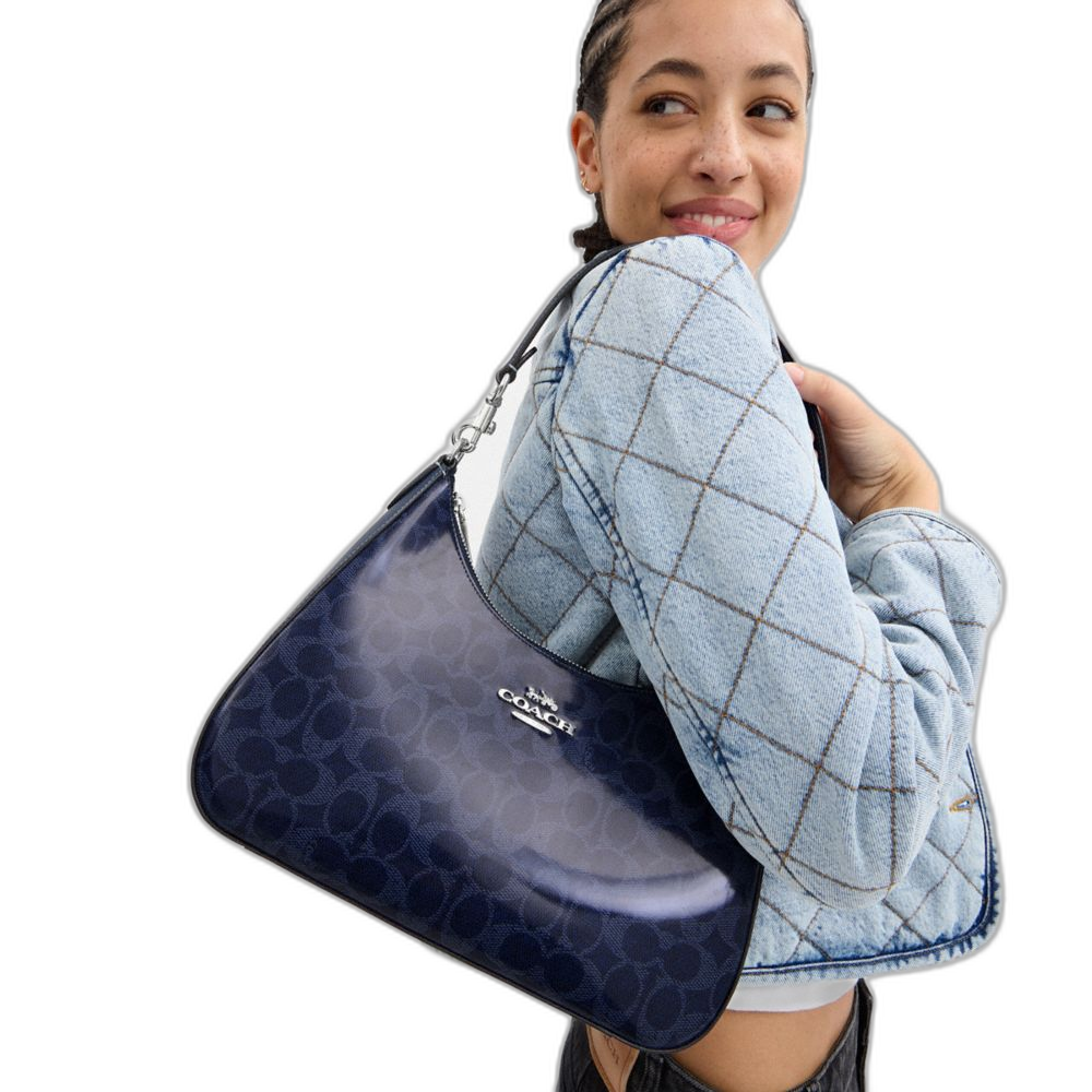 Coach Women's Teri Hobo Bag In Signature Canvas Silver/Dark Denim