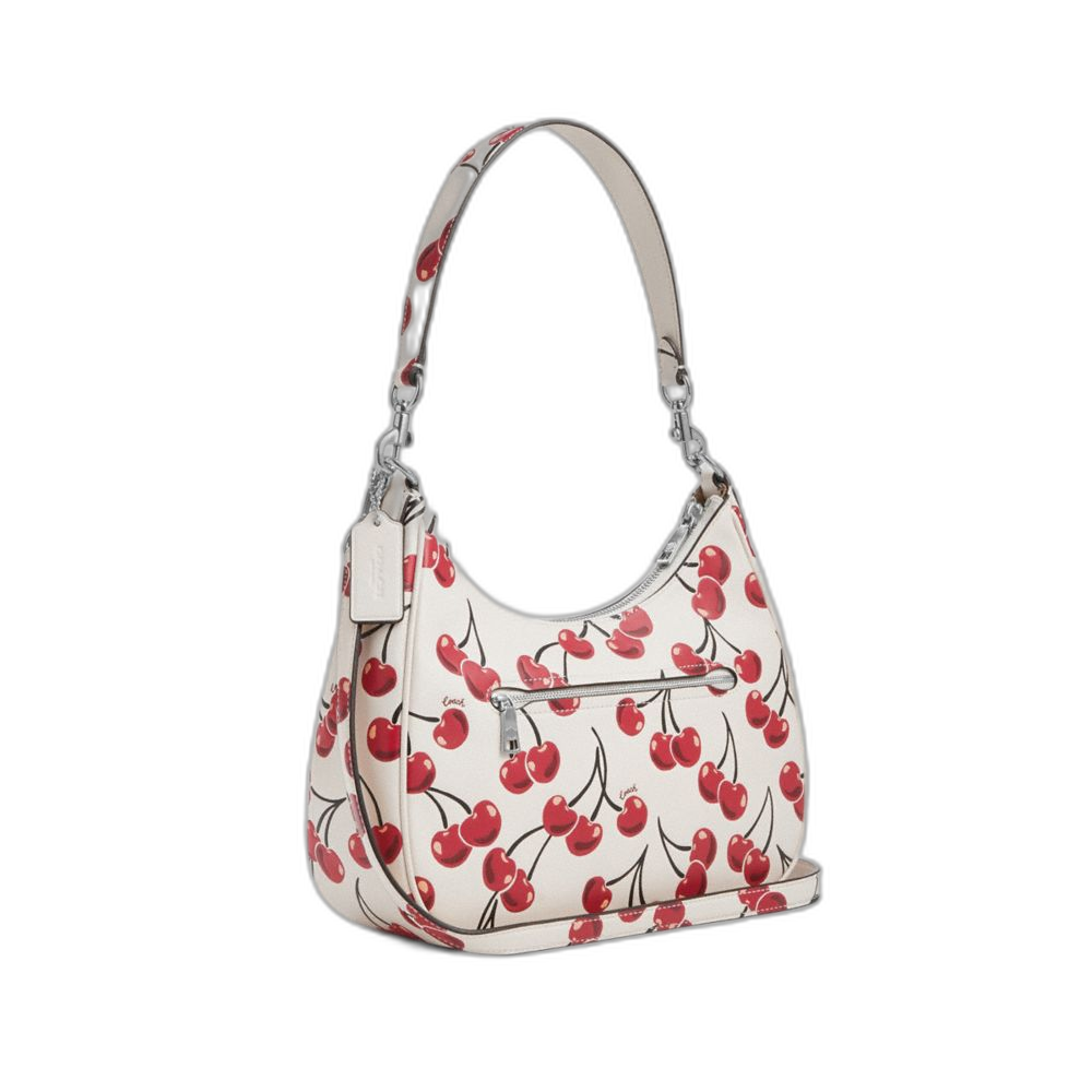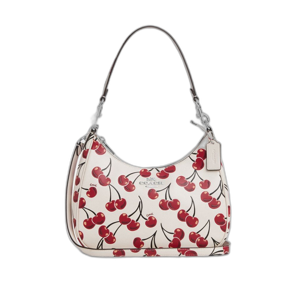 Coach Women's Teri Hobo Bag With Cherry Print Silver/Chalk Multi