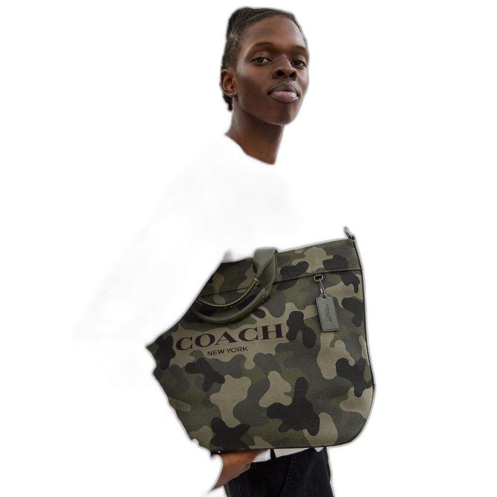 Coach Women's Tote Bag 38 With Camo Print Gunmetal/Green Multi