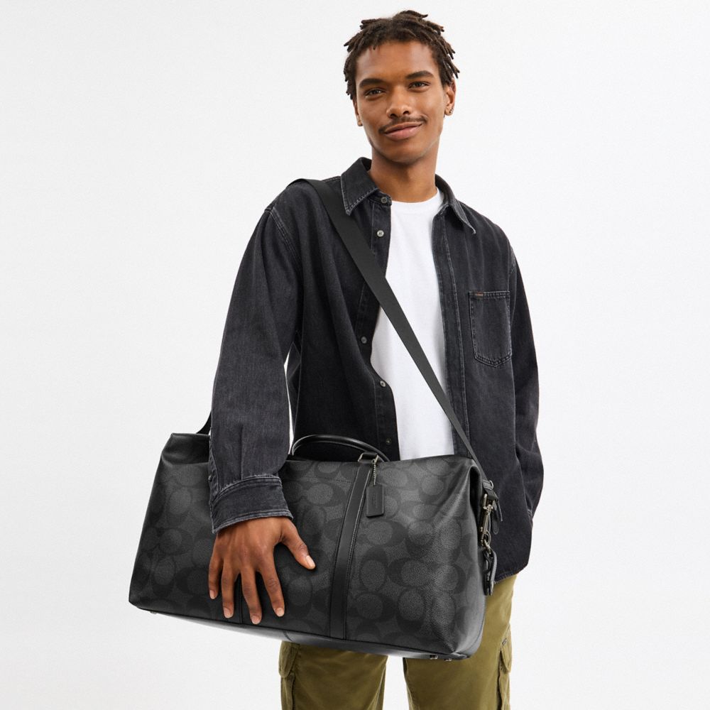 Coach Women's Trekker Bag 52 In Signature Canvas Gunmetal/Charcoal/Black