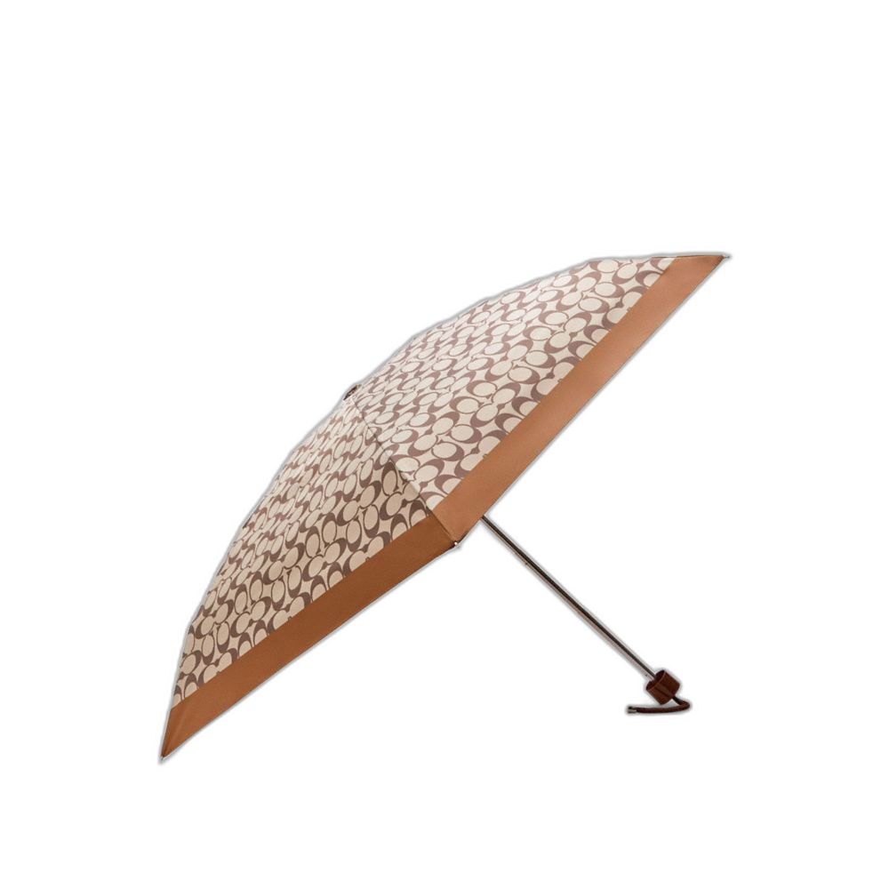 Coach Women's Uv Protection Signature Mini Umbrella Silver/Khaki Saddle
