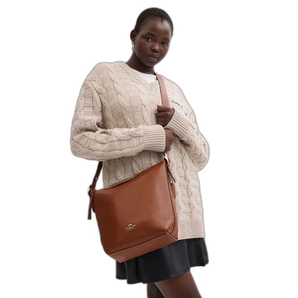 Refined pebble leather Inside zip, cell phone and multifunction pockets Zip-top closure, fabric lining Outside zip pocket Adjustable strap with... Read more