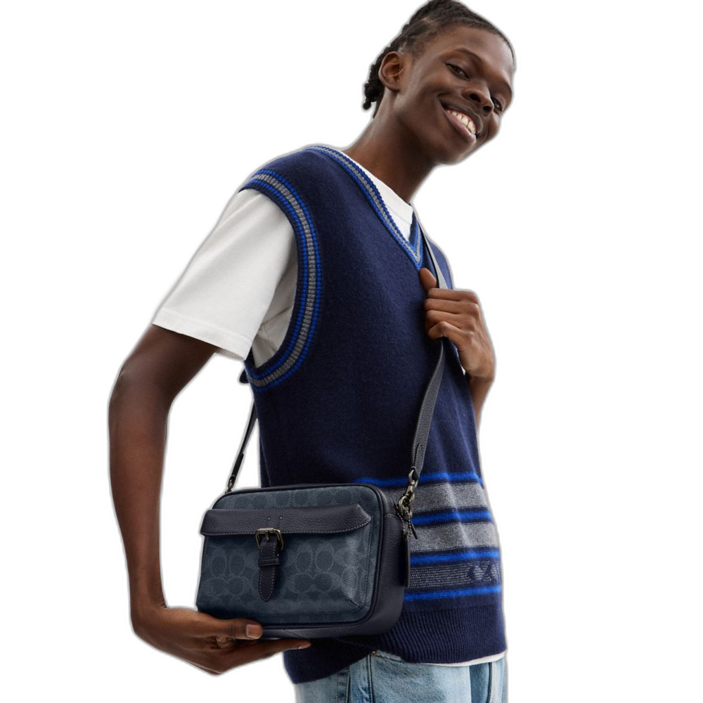 Coach Women's Warner Crossbody Bag In Signature Canvas Gunmetal/Denim/Midnight Navy