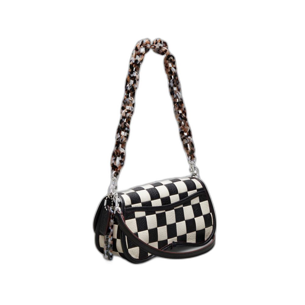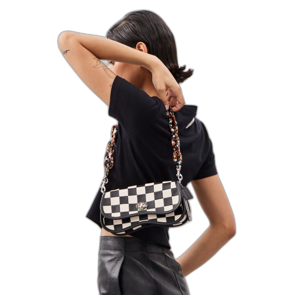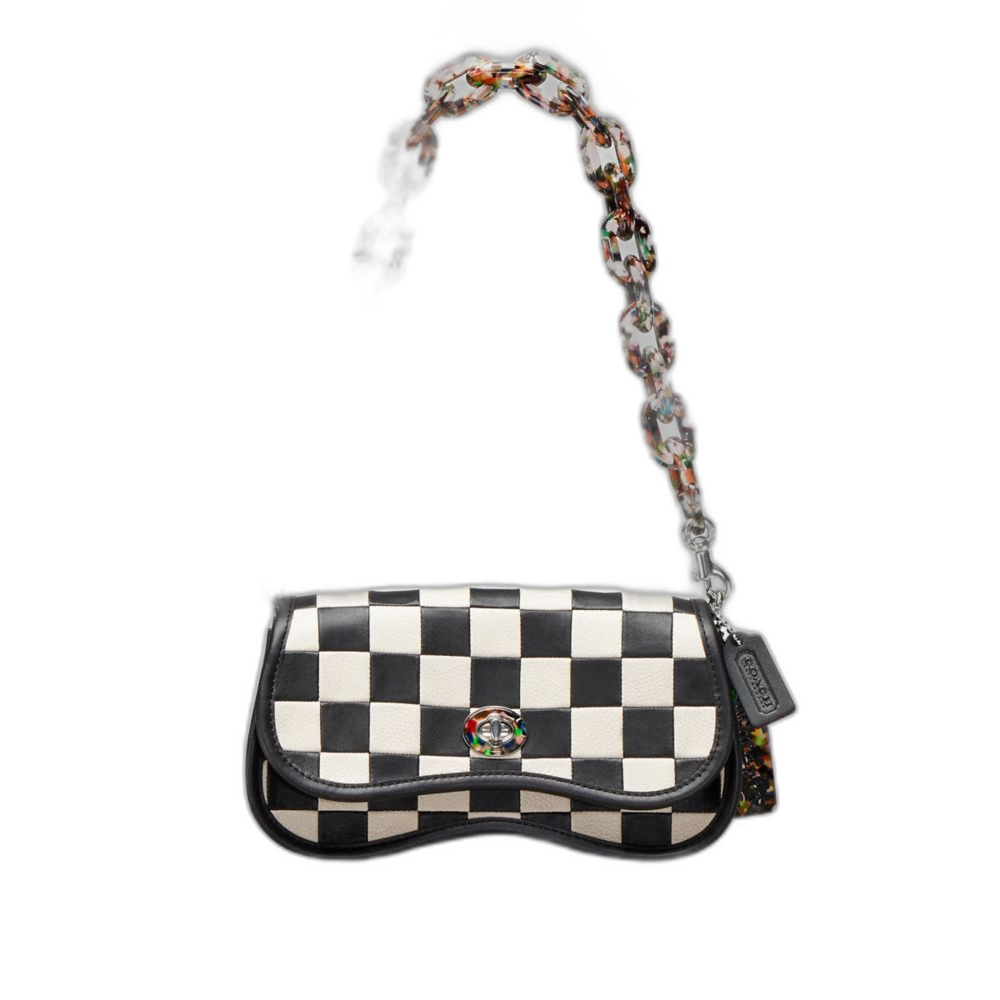 Coach Women's Wavy Dinky Bag In Checkerboard Upcrafted Leather Black/Chalk