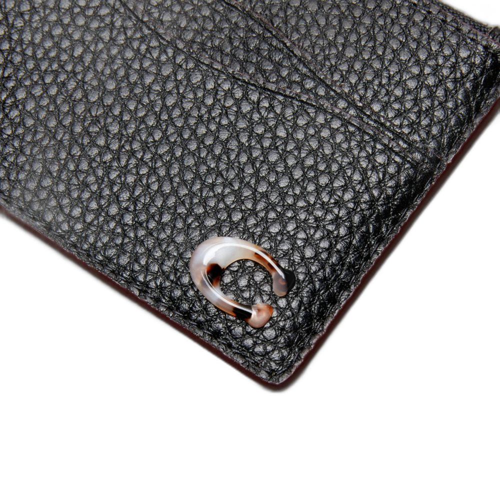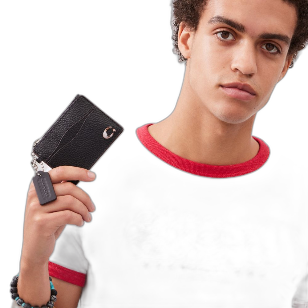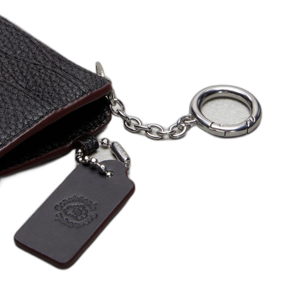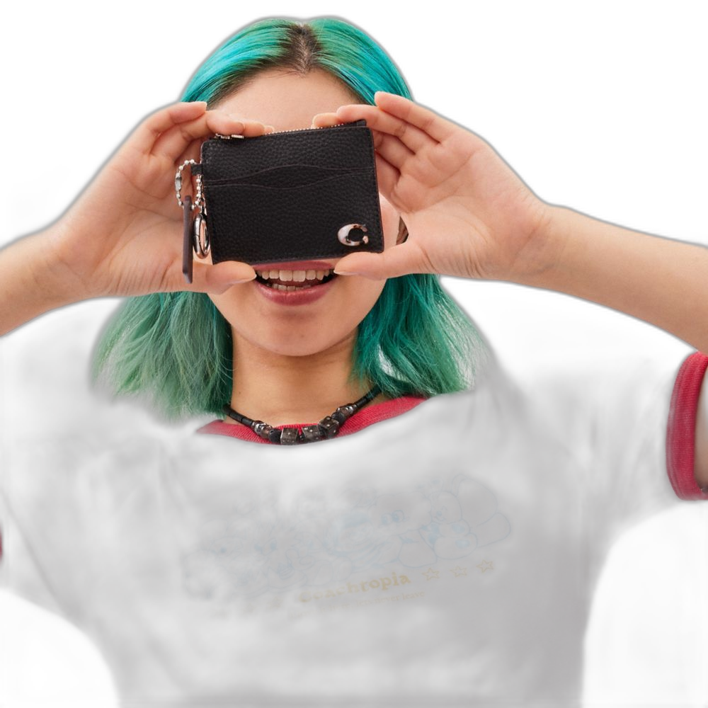 Pebbled Coachtopia leather* C plaque: 70% recycled acrylic plastic Six card slots Center zip pocket Attached split key ring 4"... Read more