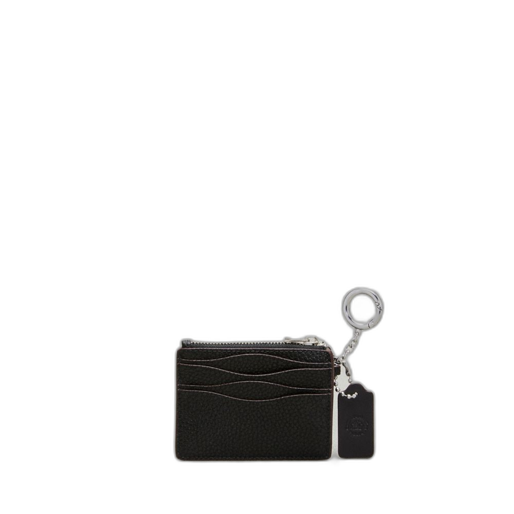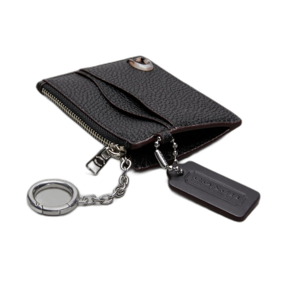 Coach Women's Wavy Zip Card Case In Coachtopia Leather With Key Ring Black