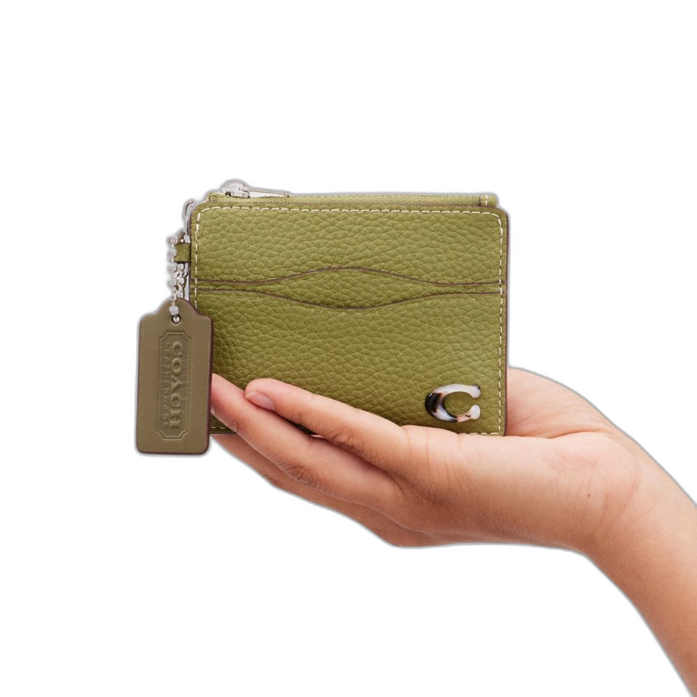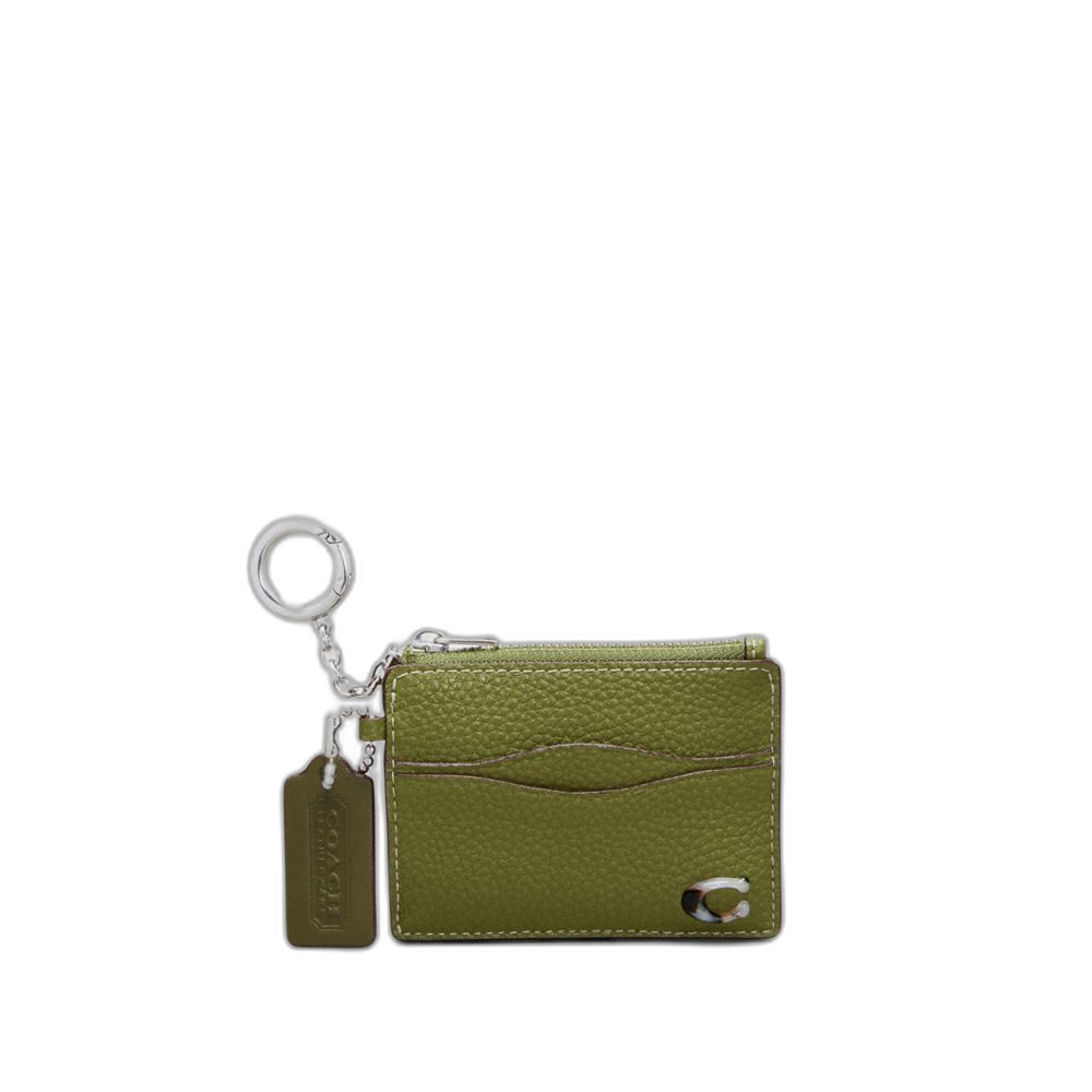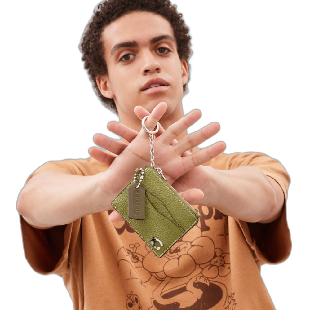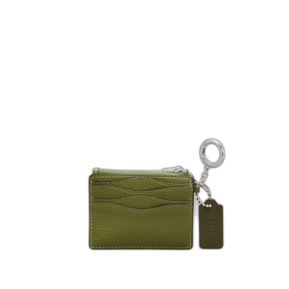 Coach Women's Wavy Zip Card Case In Coachtopia Leather With Key Ring Olive Green