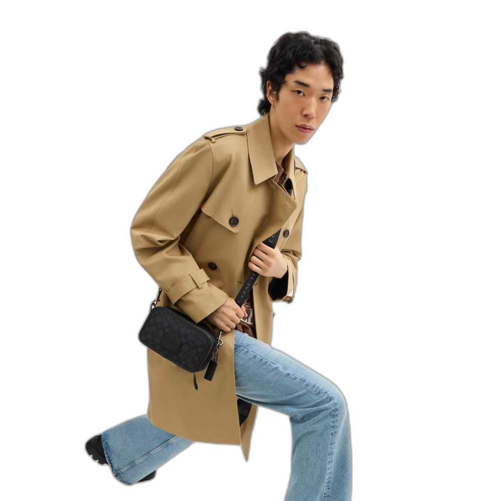 Signature coated canvas and smooth calf leather Two credit card slots Double zip closure, fabric lining Detachable strap with 28"... Read more
