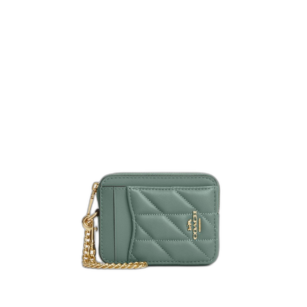 Coach Women's Zip Card Case With Quilting Gold/Sage